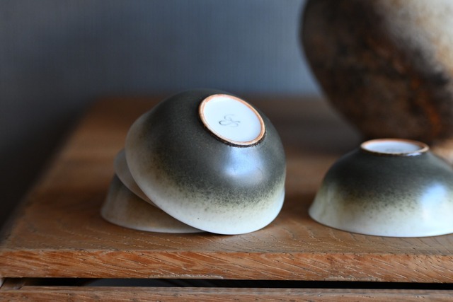 雰囲気のあるグラデーションが一目で気に入って持ち帰った茶杯。 アラスカストアで扱う他の茶杯と比べると、高さが少しだけ低め。 渋めの茶壺などとの相性がとても良さそうだなと思い買い付けました。この茶杯だけでも、シックな雰囲気を演出できそうです。 内側は真っ白ではなく、ほんの少しだけクリーム色がかって見えますが、お茶の色を邪魔するほどのクリーム色ではありませんのでご安心ください。 価格はひとつ当たりのお値段です。 写真に写っている茶杯以外のものは撮影用です。 【大きさ】 直径 約5.8cm 底部分の直径 約2.3㎝ 高さ 約2.5cm 容量 (実用) 約25㏄ 重さ 約28g ※ご覧いただいている商品の写真につきましては、できるだけ実物に近いように努めておりますが、光の当たり具合やお使いの環境(モニター、ブラウザ等)により、見え方が実物と若干異なる場合がございます。あらかじめご了承ください。