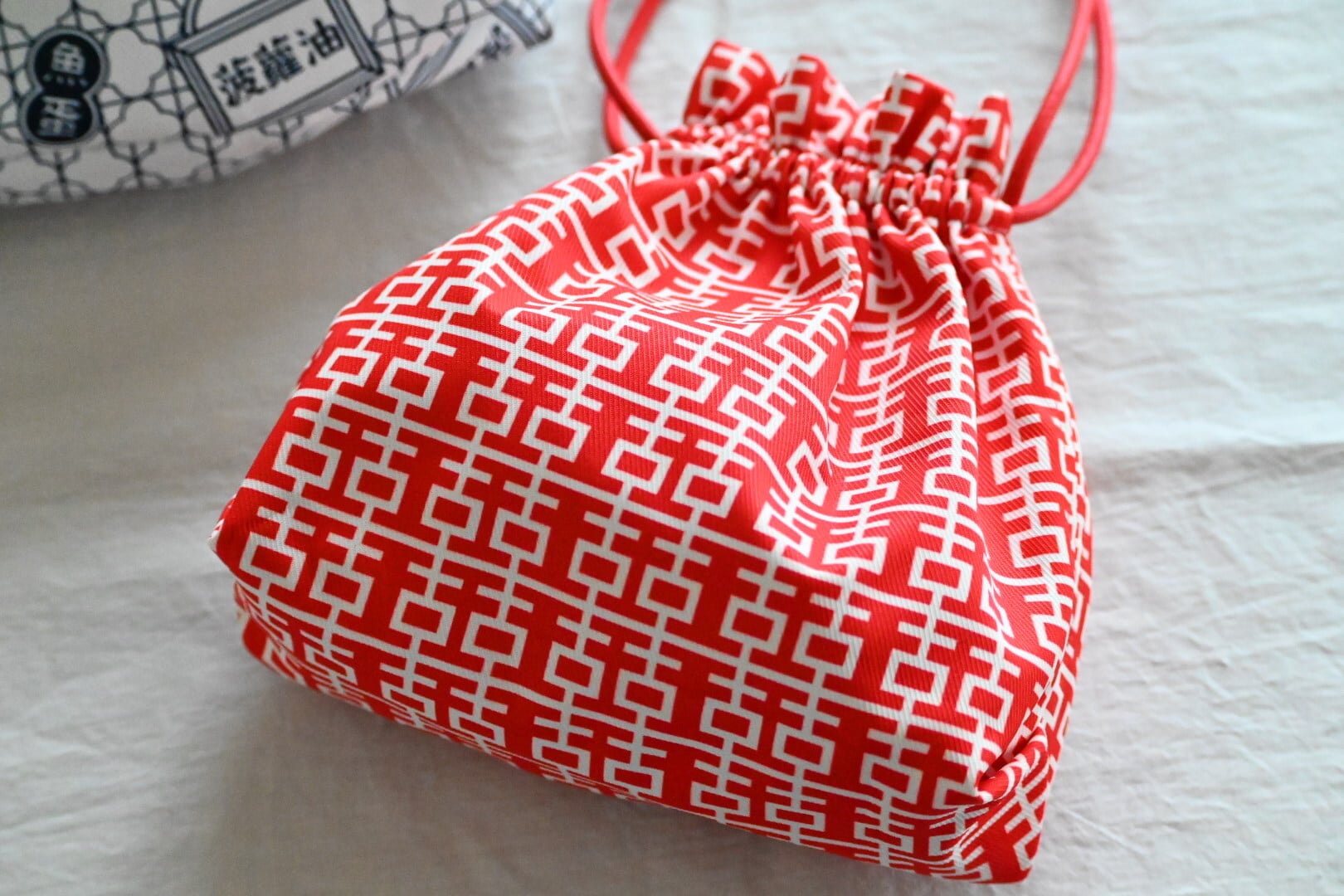 【送料について】 この一点のみお買い物された場合、レターパックライト(¥430)が最安で選択可能です。 ※他のアイテムも購入される場合は必ずヤマト宅急便をご選択ください。 なお、レターパックの際は基本的に包装が簡易となります。ご理解くださいませ。 ***** この巾着はサンプルを2年前に作って以来愛用していて、私は普段この中に折りたたんだカンフーシューズを入れて持ち歩いています。 飛行機に乗る際は巾着ごとリュックに入れて、機内でカンフーシューズに履き替えます。 私が使っているのは赤色の囍(ダブルハピネス)柄なのですが、リュックの中で目立つのも気に入っているポイントです。 今回は2種類の生地でご用意しました。 ●囍(ダブルハピネス)柄 赤色の生地に白い「囍」の文字がデザインされた個人的に大好きな生地です。裏地も紐も赤色で統一しています。 ● 茶餐廳のメニューの柄 白の生地に紺色で香港の茶餐廳で見かける食べ物の名前がデザインされています。裏地と紐も紺色です。 香港好きな方にとってはピンとくる漢字の並びばかりかと思いますが、初めての方にはなんだろうと不思議かもしれません。 例えば「西多士」はフレンチトースト、「菠蘿油」はバターが挟んである日本のメロンパンのような見た目のパンのこと。 どちらも柄の出方には個体差がありますのでご了承ください。 室内で撮った写真の中で数枚若干暗く写ってしまった写真がありますが、明るく写っている他の写真の方が実物に近いです。 化粧品やハンドクリームなど身の回りのもの入れに、カメラなどのクリーニング用品入れに、お子さん用のおやつ入れに、など、少し細々していて持ち歩きたいものたちをまとめるのに便利です。 また、スマホと小銭入れだけさっと入れて、ちょっとした外出にも使えます。 紐は色々の素材を比べてみて、スッーっと引っ張りやすいものを選びました。初めて使う際少し固い感じがするかもしれませんが、使うにつれて馴染んでいきます。 肩にかけられる紐の長さではありませんので、もし紐を長くしたい場合はご自身で付け替えていただくのも良いかもしれません。 屋外での撮影の際、偶然知り合いの親子さんにお会いしたので2歳の息子さんにも持ってもらいました(写真7枚目)。大きさの参考になれば幸いです。 【サイズ】 ・紐の長さ 約14cm ※きゅっと巾着を絞めた状態での持ち手〜巾着本体までの長さを測っています。 ・大きさ 縦約15cm×横約19cm ※こちらは巾着を絞めない状態で平らに置いて測っています。 ・底のまち部分 約5cm ・重さ 約35g(多少の個体差あり) ※ご覧いただいている商品の写真につきましては、できるだけ実物に近いように努めておりますが、光の当たり具合やお使いの環境(モニター、ブラウザ等)により、見え方が実物と若干異なる場合がございます。あらかじめご了承ください。
