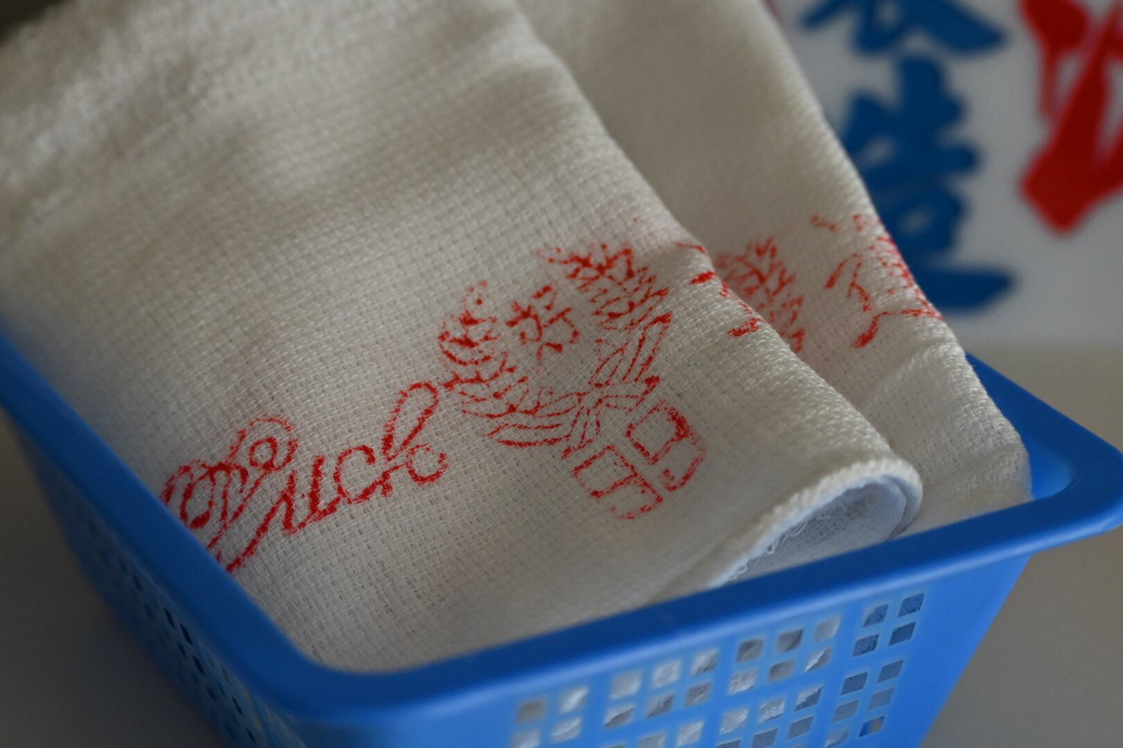 香港で頼りにしているおじさんが数人いるのですが、そのうちの1人のおじさんのお店で見つけたタオルです。すでにご紹介している「台」印のグッドラックタオルと、デザインはそんなに変わらないのですが、なぜ持ち帰ってきてしまったかというと真ん中のマークが「好」だったから。