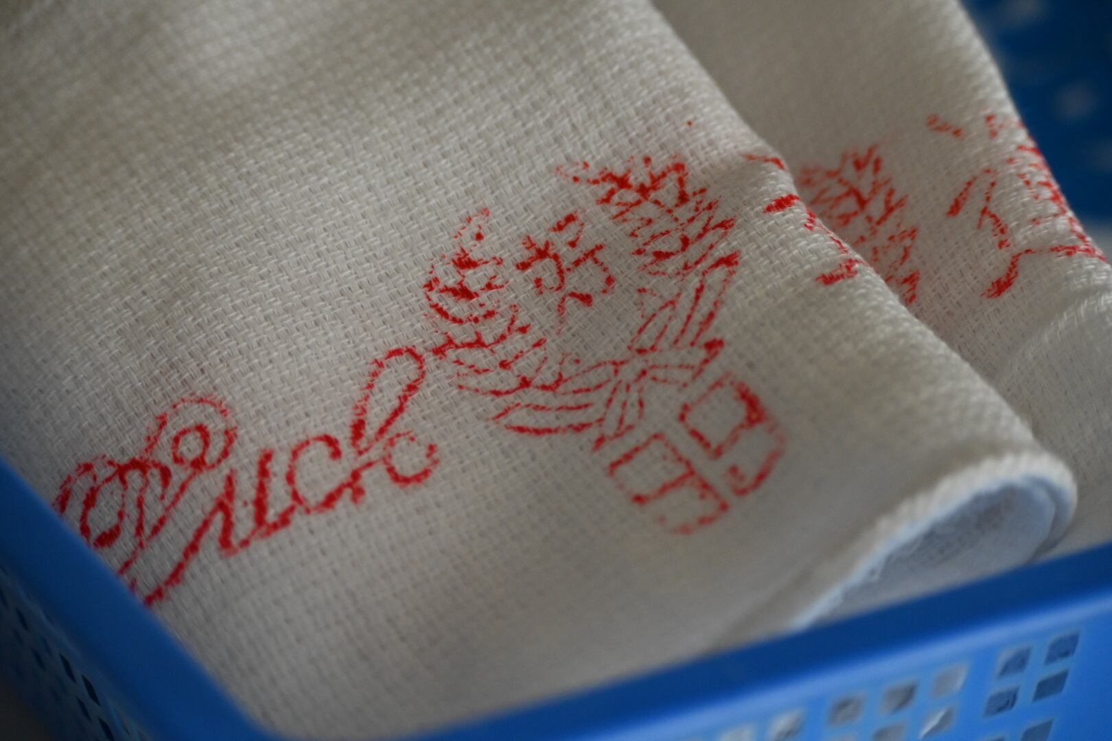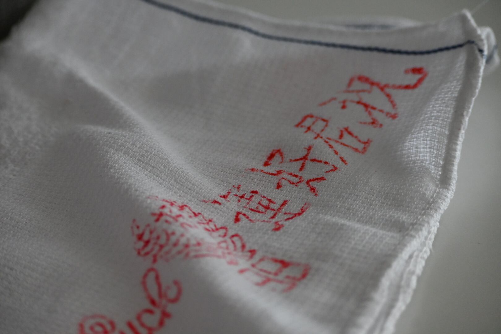 台マークと同じように赤い文字がクレヨンで書いたみたいに少し掠れていて、印刷は1枚に2箇所あるのですが(両端に印刷があります)、片方が濃くもう片方が薄い、というアンバランスさ。