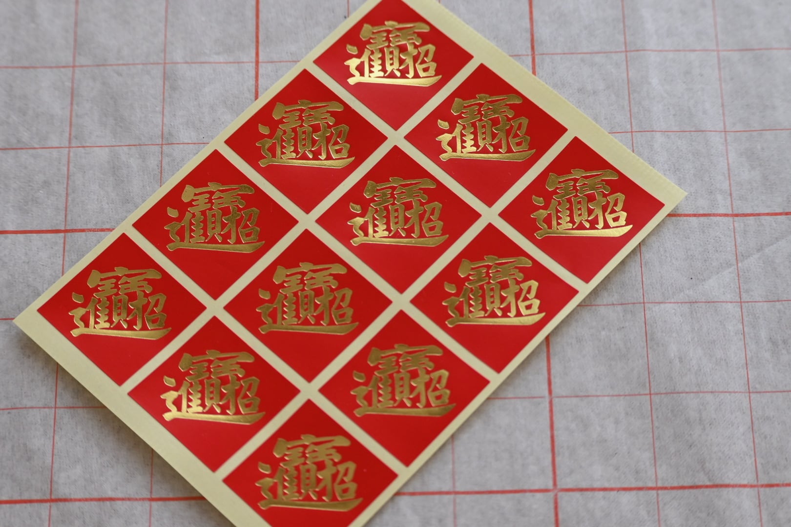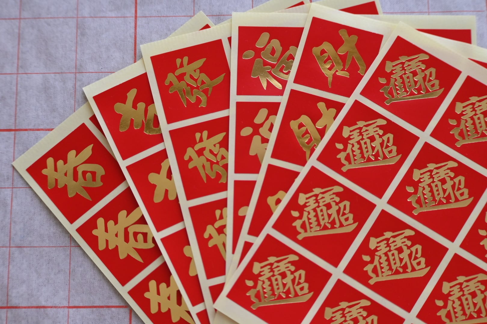 春、吉、發、福、財のシールに加え、どう頑張っても出なかったものすごい画数の漢字(最後の写真)。これは招財進寶の4文字を合体させた文字で、文字の通り「財を招き、宝が入ってくる」という意味の縁起の良い言葉だそうです。