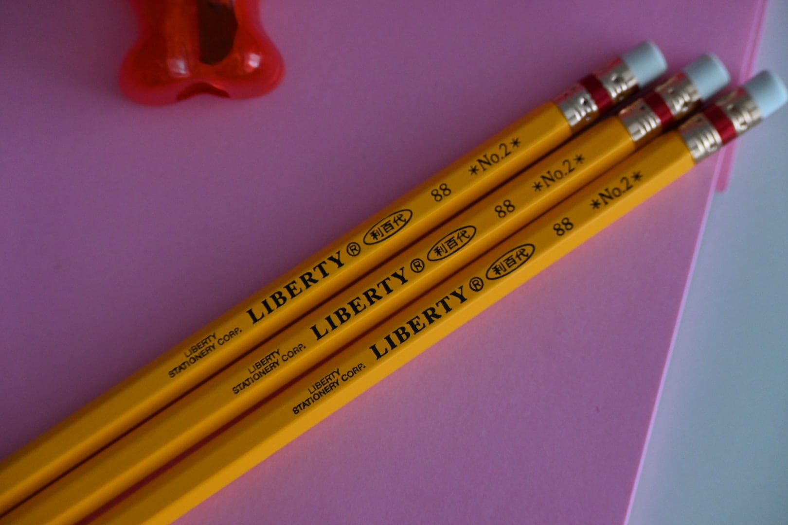 台湾の文房具メーカー、利百代(リバティ)のメイドイン台湾の消しゴムつき六角鉛筆。