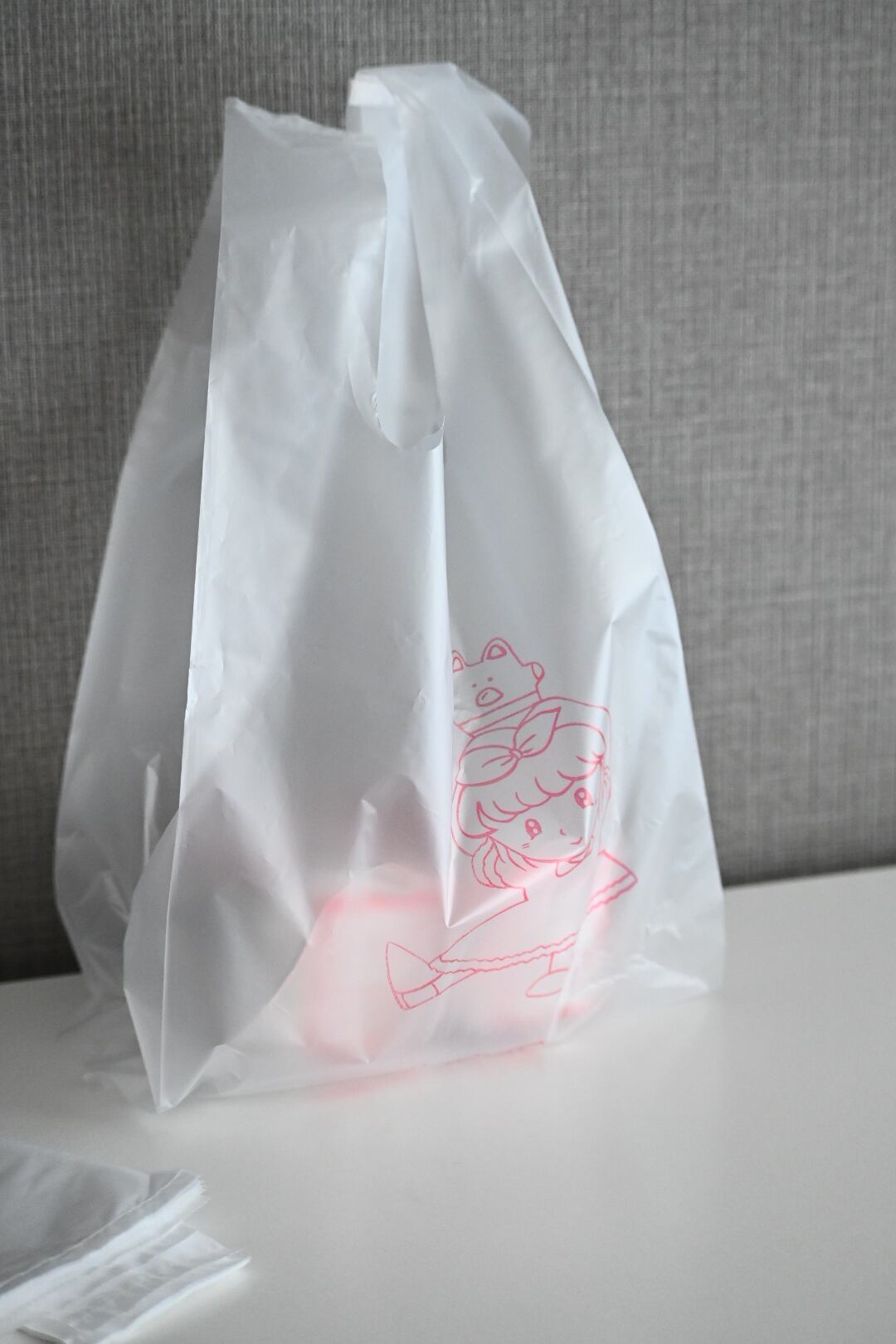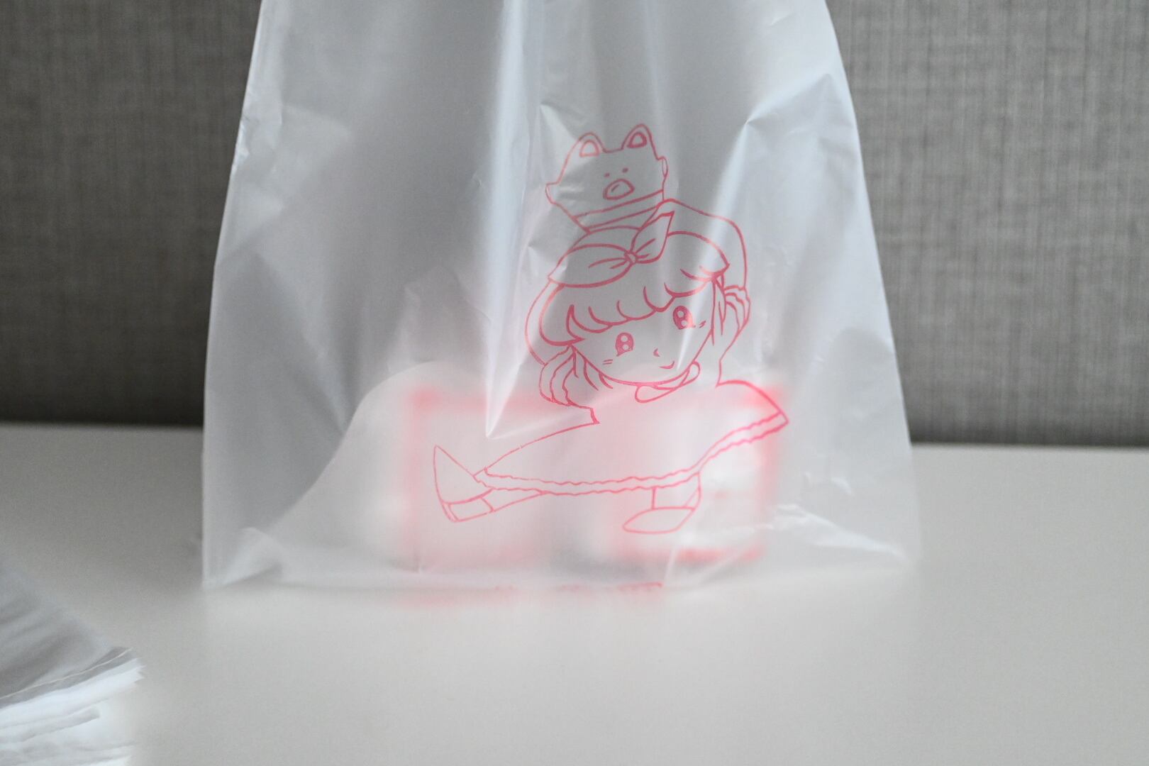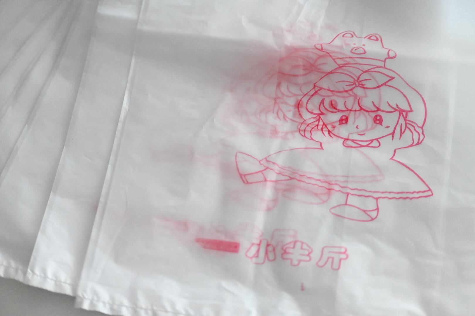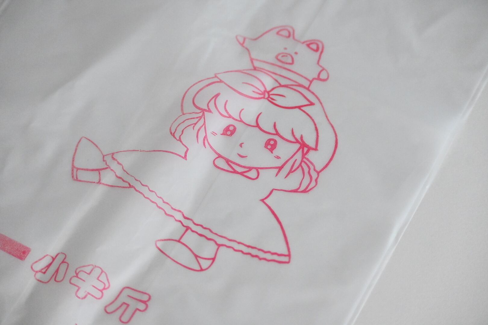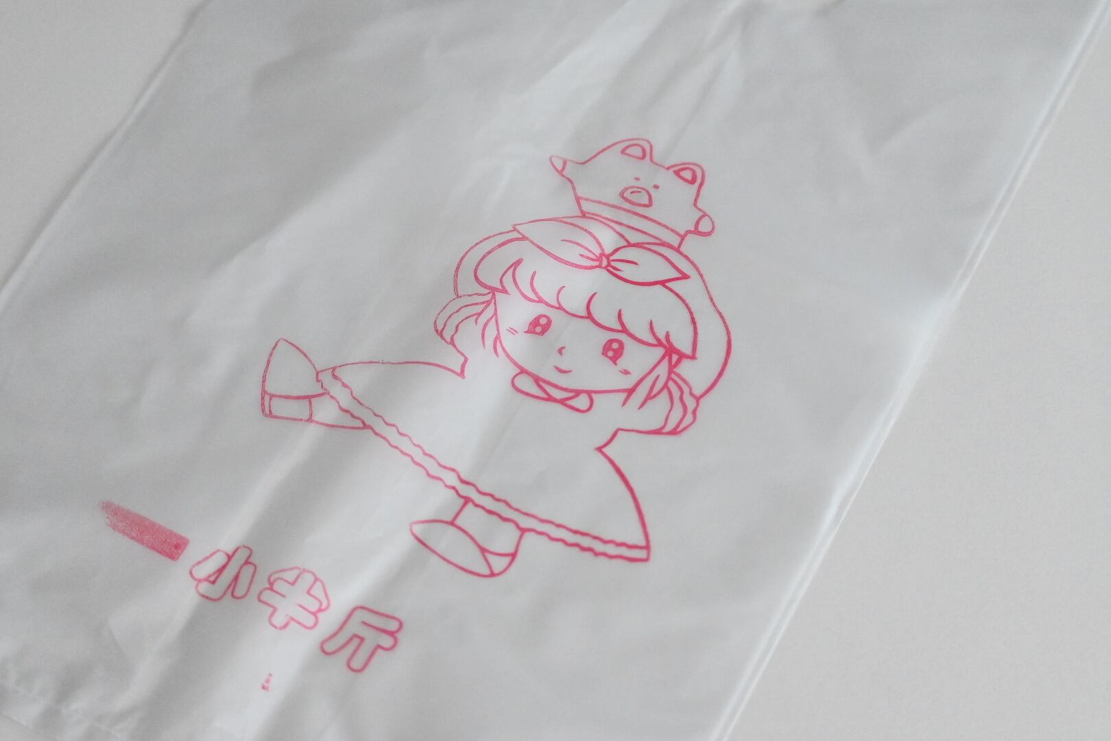 台南で見つけた、メイドイン台南のかわいいかわいい半透明のビニール袋。女の子が肩に乗せているのは、なんの動物なんでしょうか?