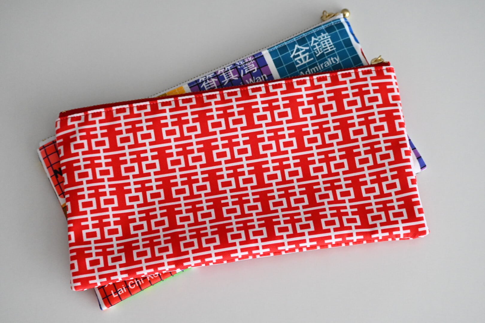 写真6枚目以降の赤いものは、おめでたいダブルハピネス柄。赤に白い文字の組み合わせが不思議と品がよくとても気に入っています。