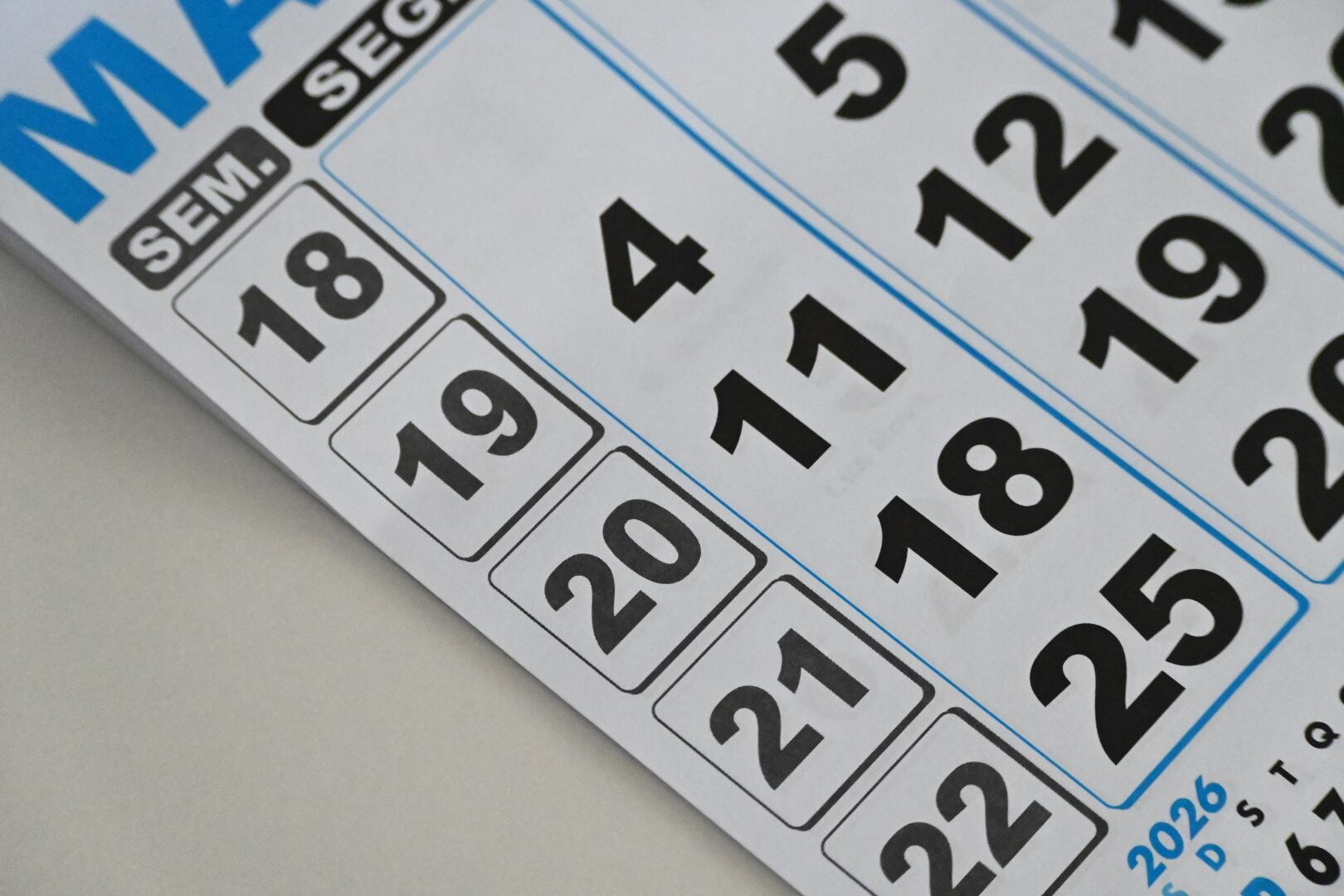 人が3人も立てばぎゅーぎゅーの店内で、目に飛び込んできたのがシンプルなデザインの2026年カレンダーです。シンプルな中にもパッと見てわかりやすい工夫が光ります。