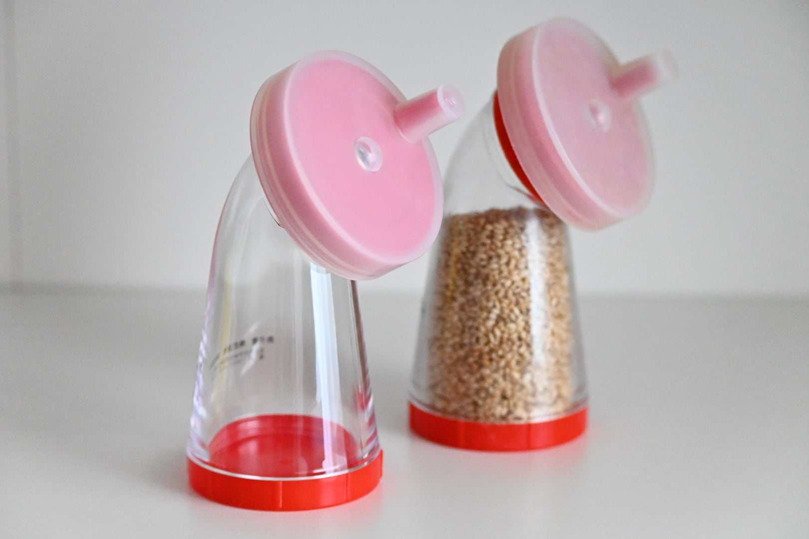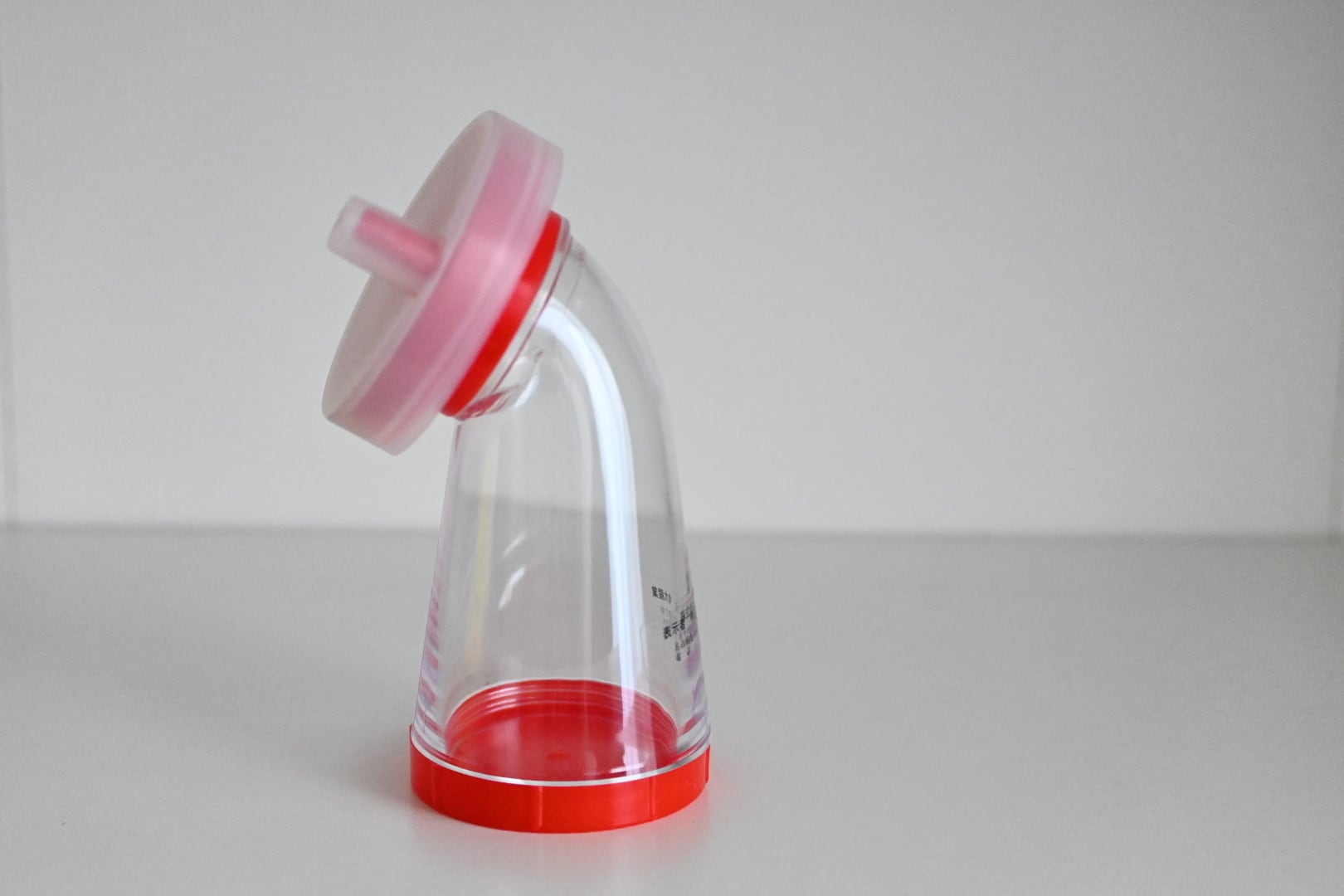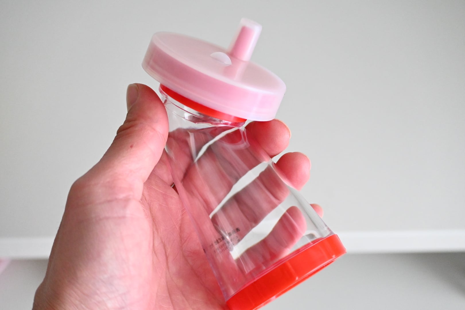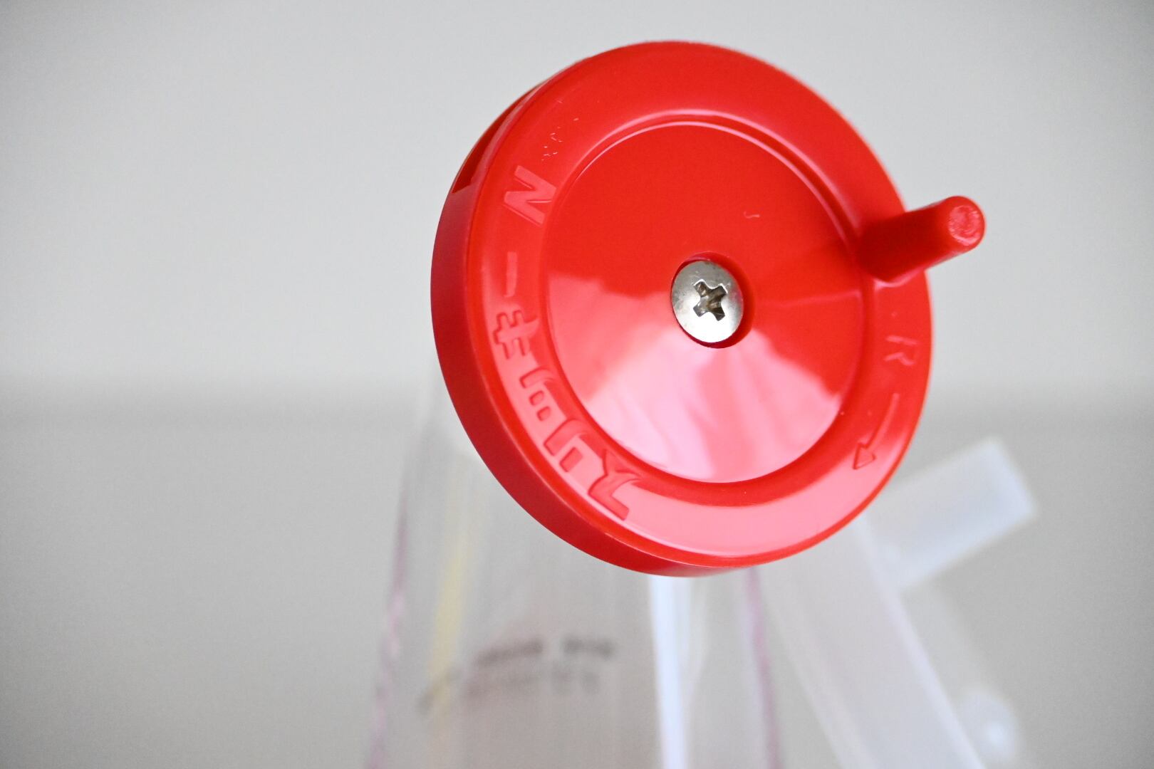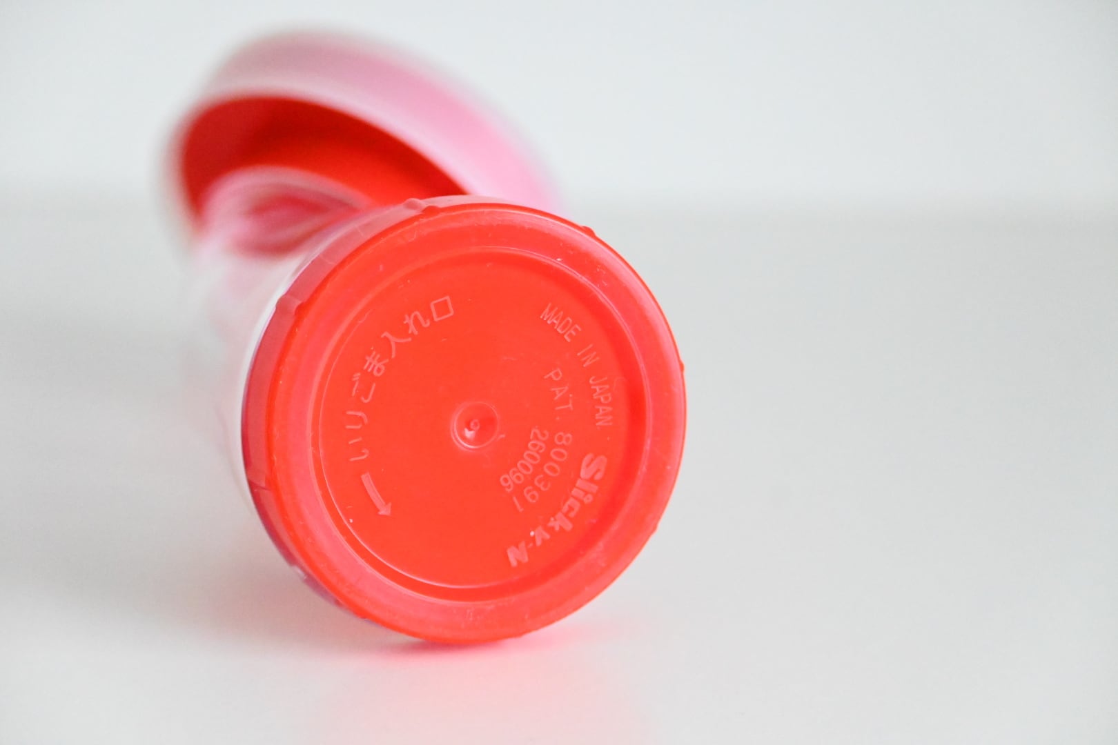 赤色の蓋と透明の本体の佇まいがカッコつけていなくて素晴らしい。中身の量が一瞬でわかるのも良い。そして手で持った時のちょうど良いサイズ。