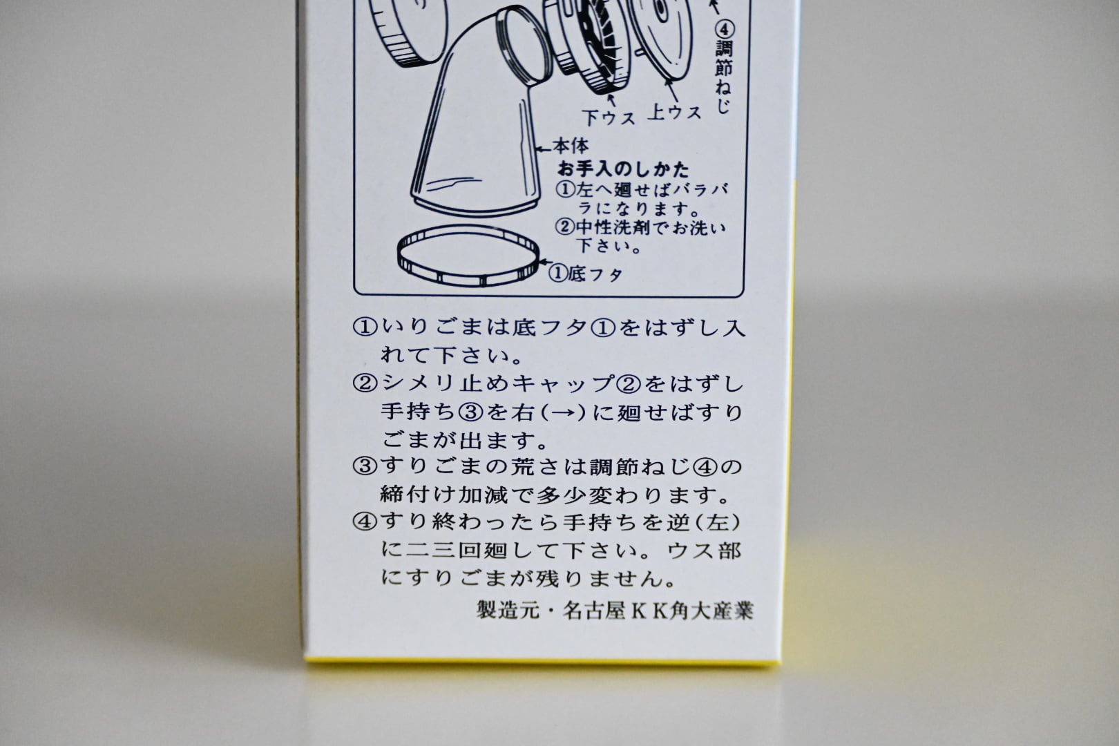 ●「シメッタゴマは乾燥してから御使用下さい。」の一文。