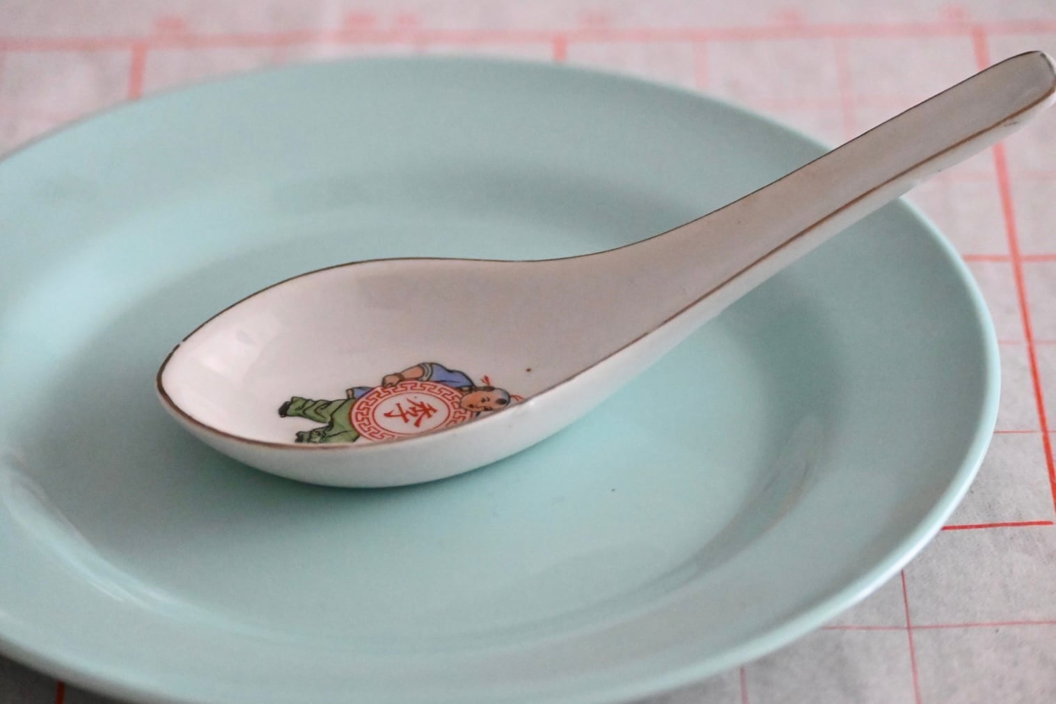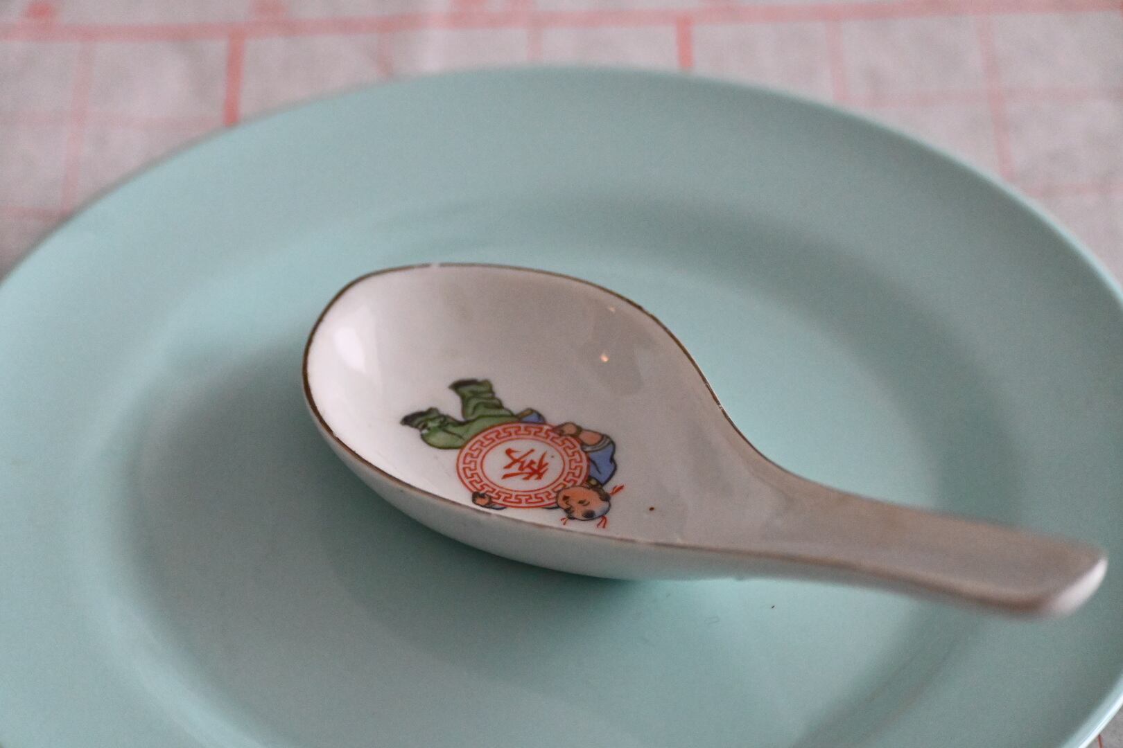 それぞれに四・季・常・春の文字と異なる絵柄が描かれた1970年代製造のれんげ。