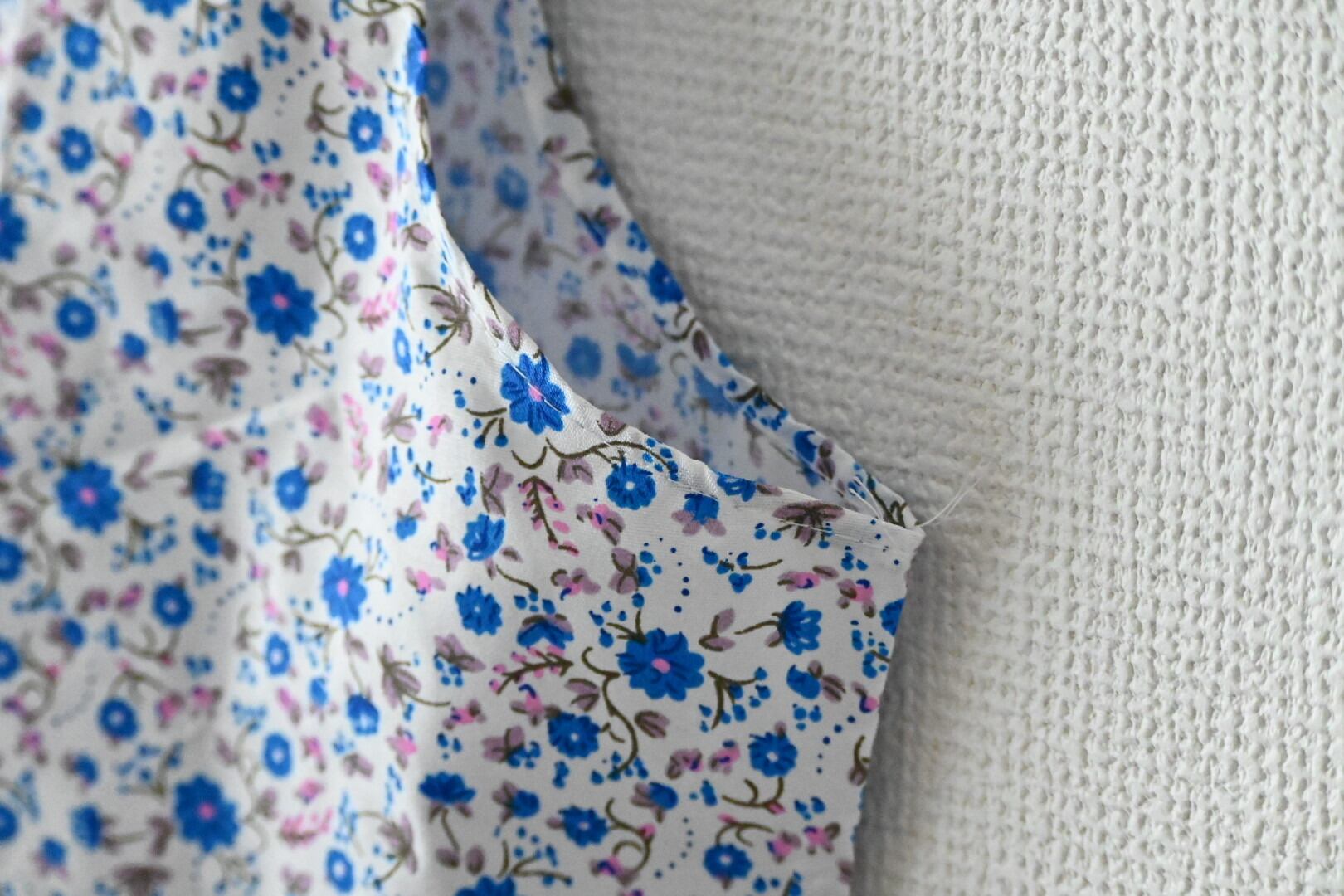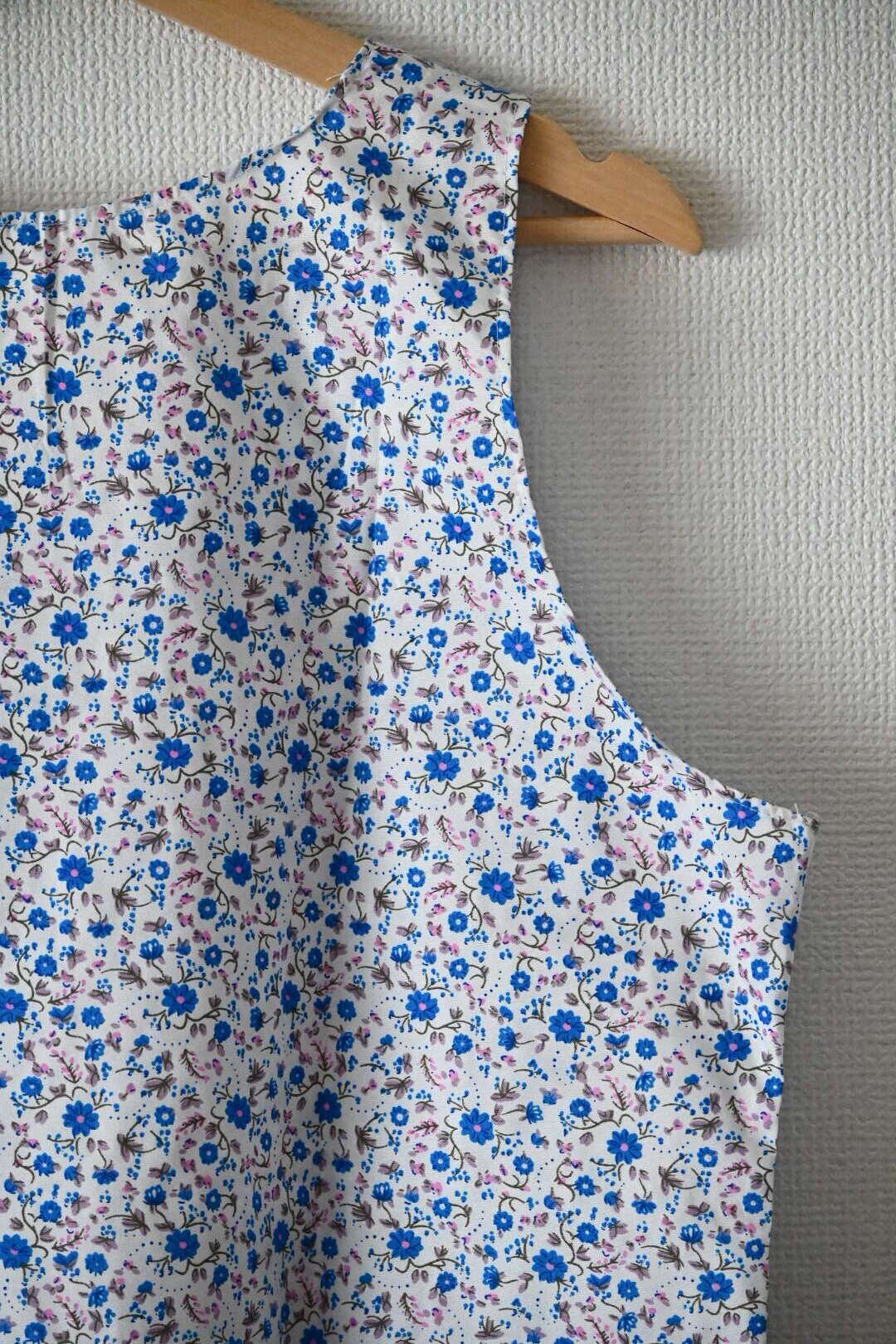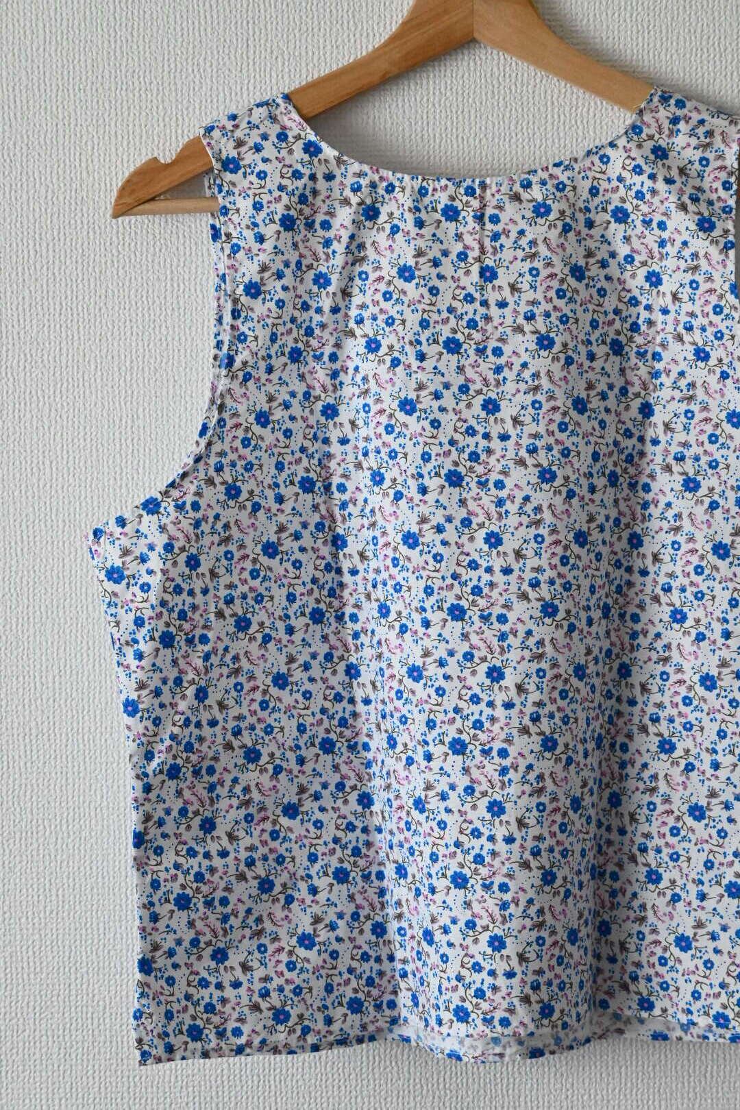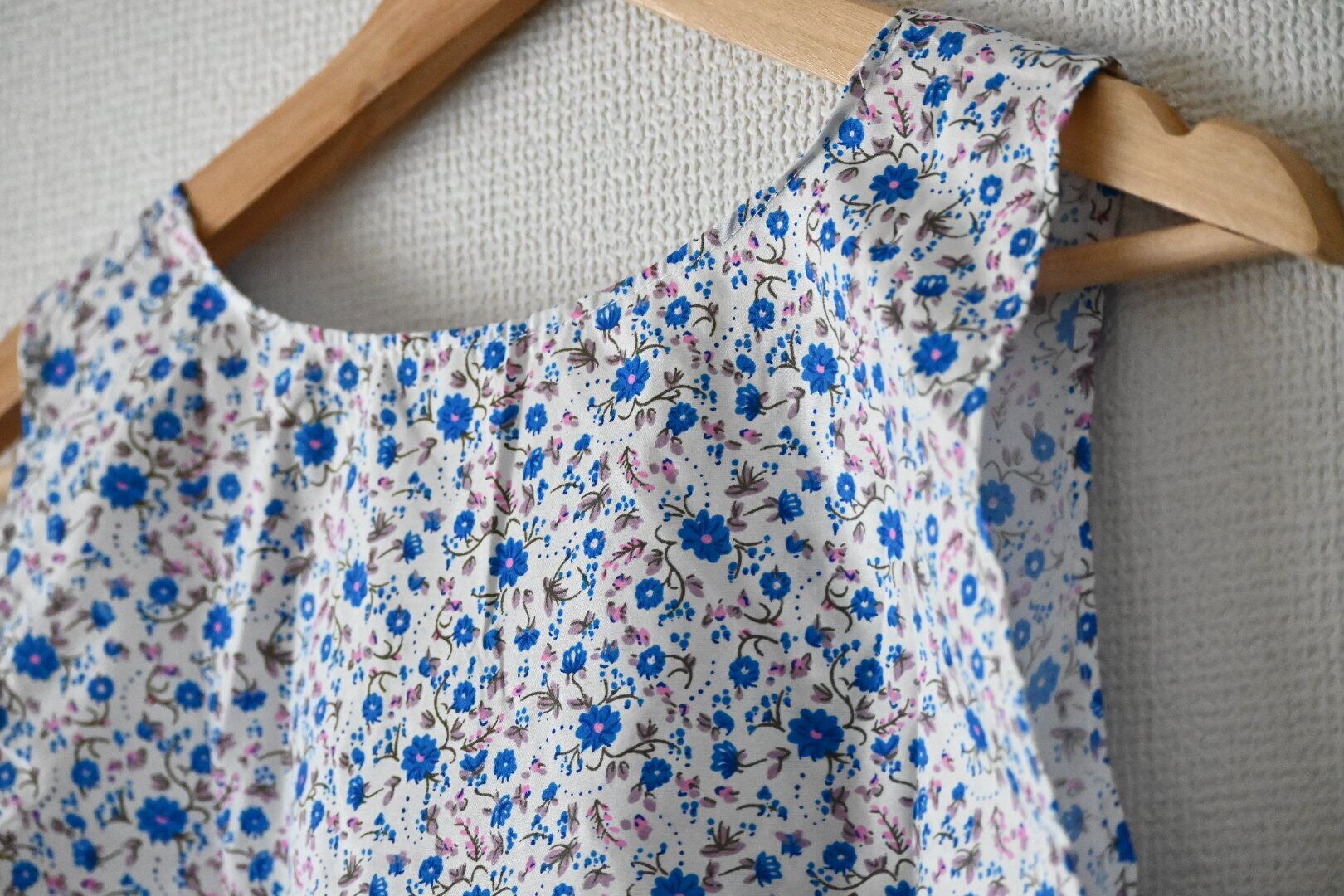 これから暑くなってくる季節に大活躍してくれる、ポケットふたつ付きの小花柄のノースリーブ。