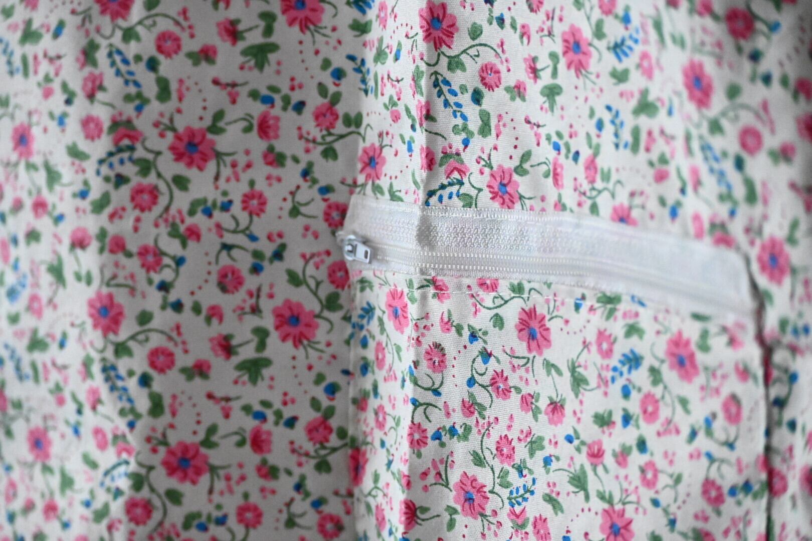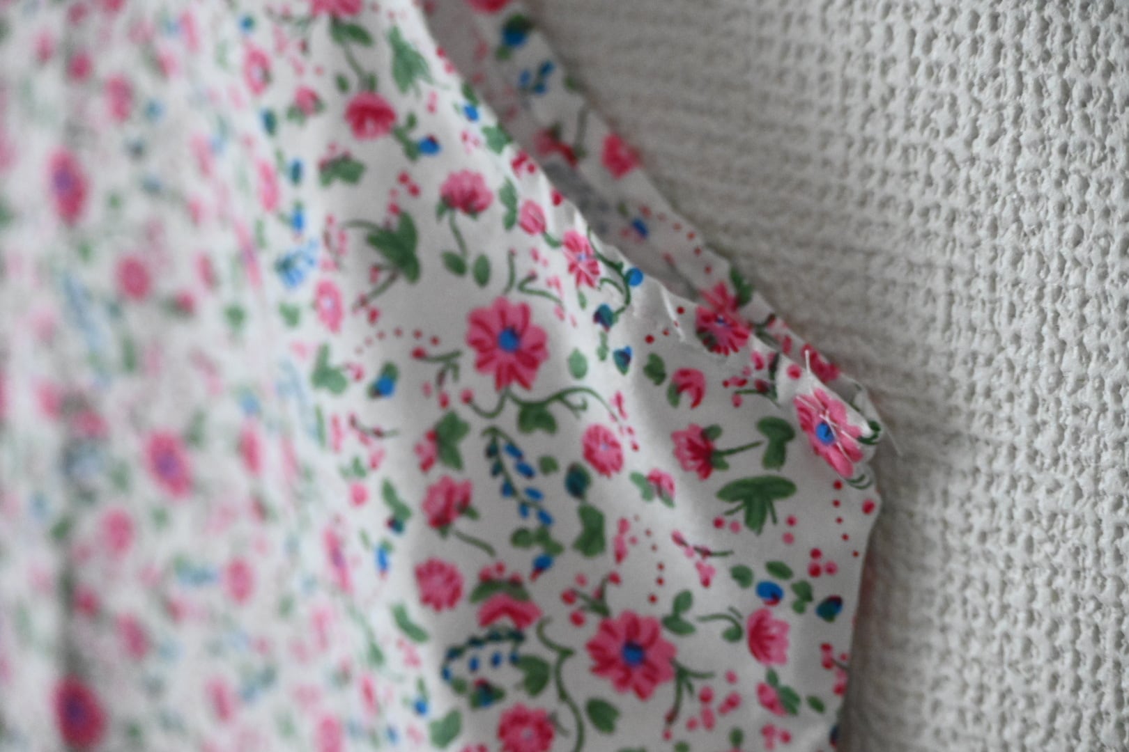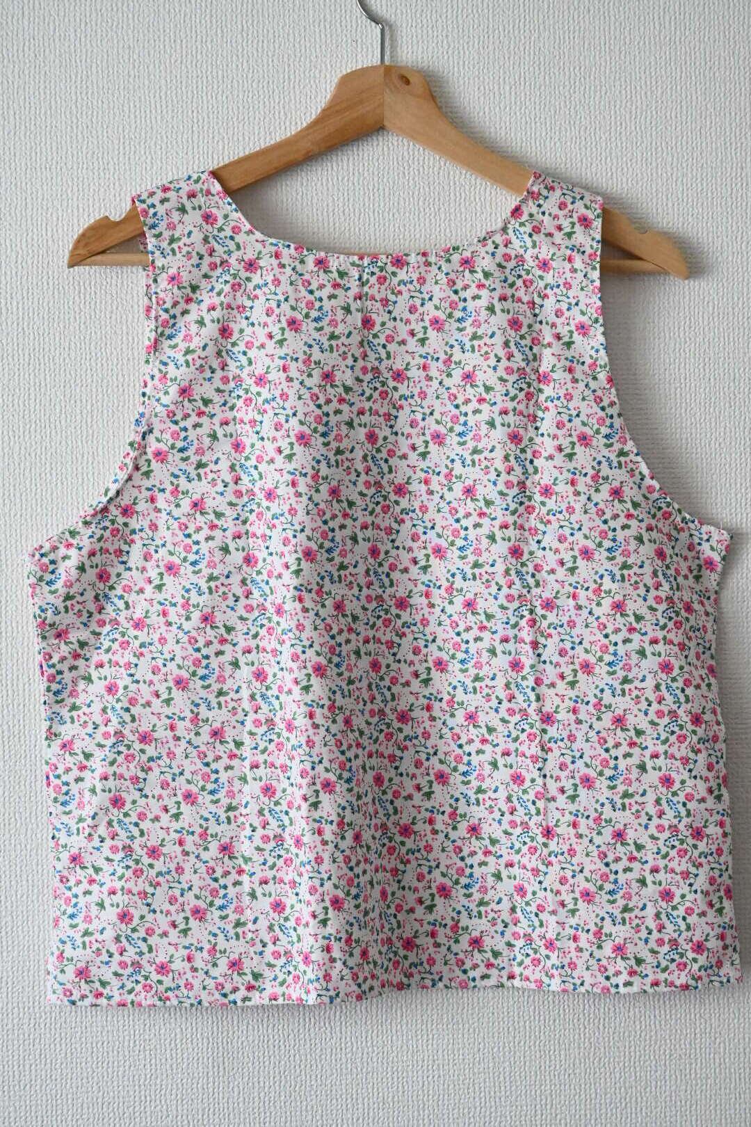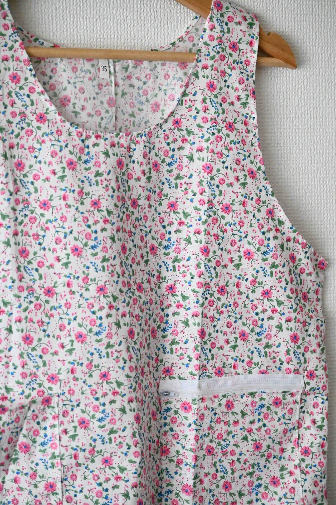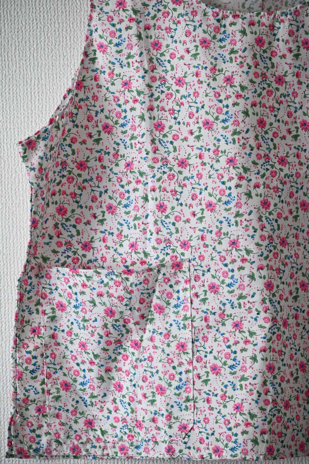 これから暑くなってくる季節に大活躍してくれる、ポケットふたつ付きの小花柄のノースリーブ。