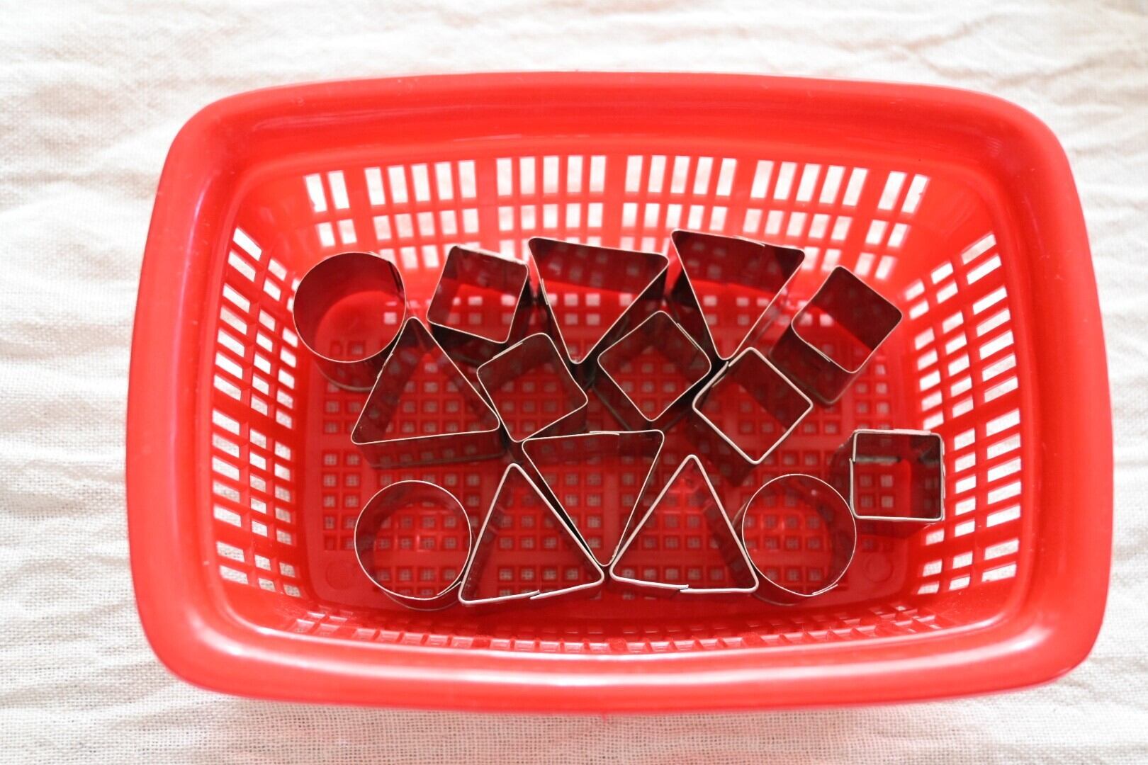 ※写真に写っている鳥型の器は撮影用の備品です。赤いプラスチックのかごは別売りです。