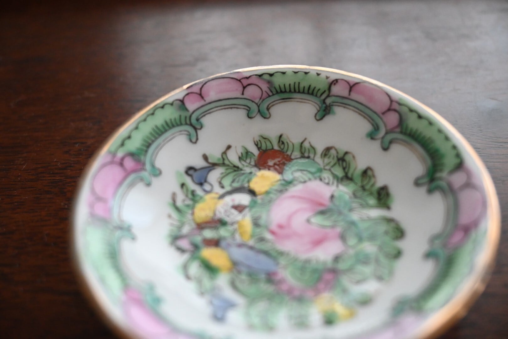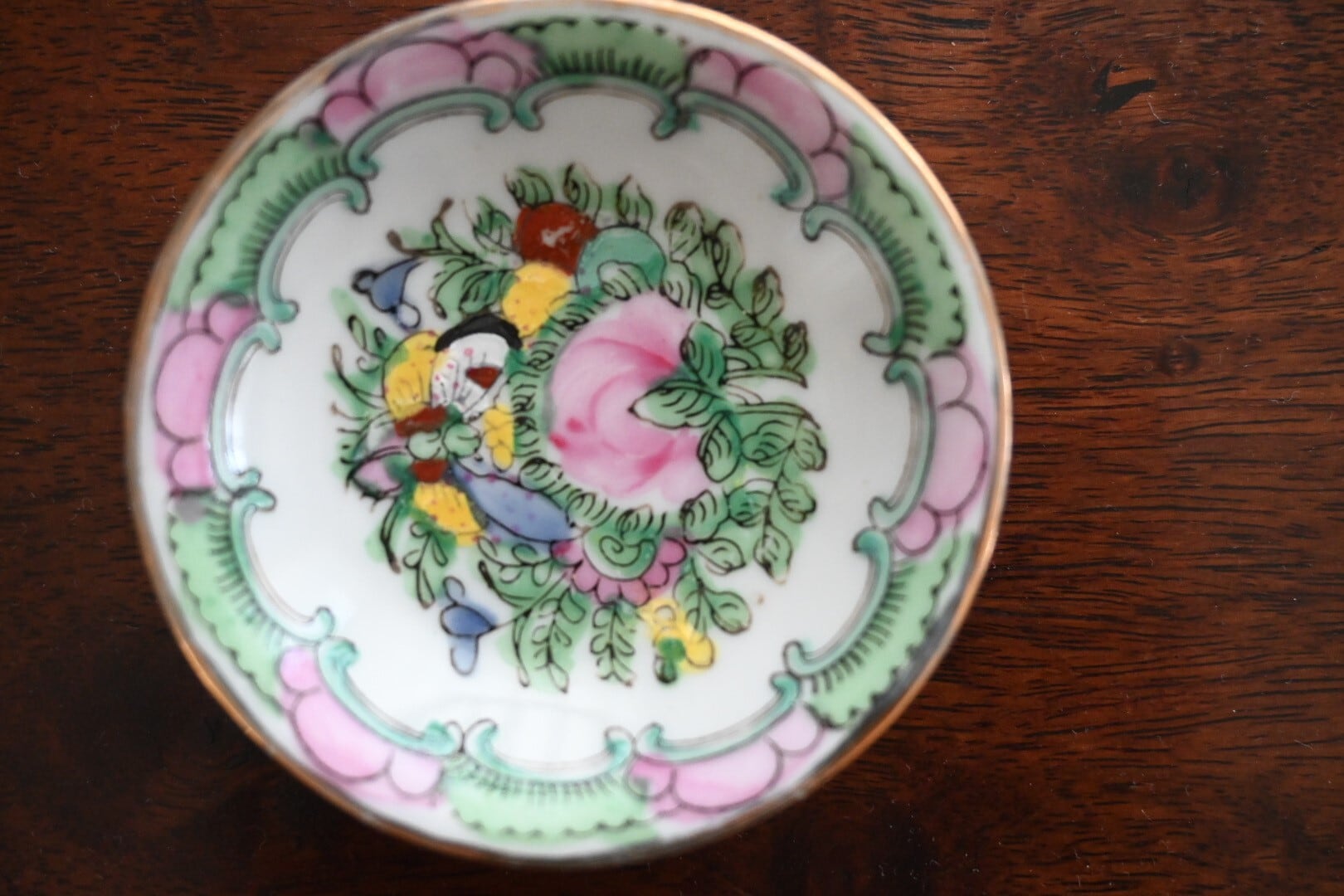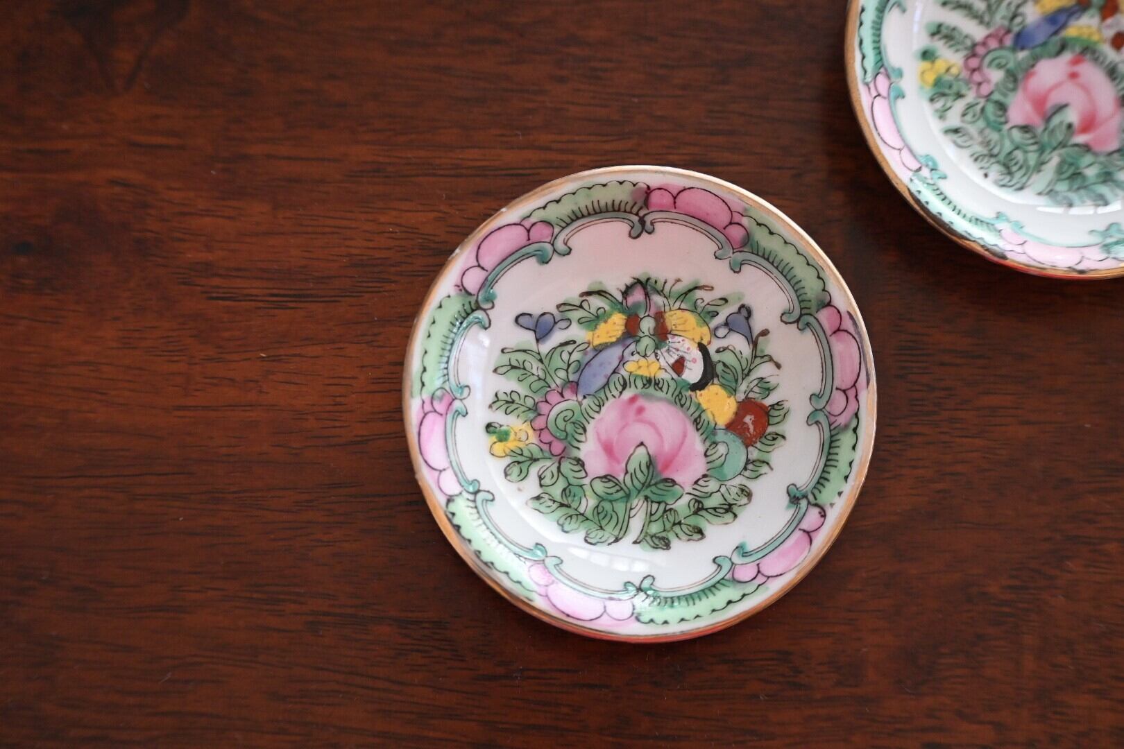 (香港)手描き豆皿(C)花と蝶 薄いグリーン