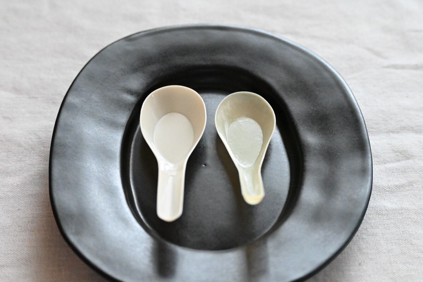 ゼリーや豆花などに、とてもよく合いそうです。どんぶりものにも使えますが、その場合はベージュの方が大き目なのでおすすめです。