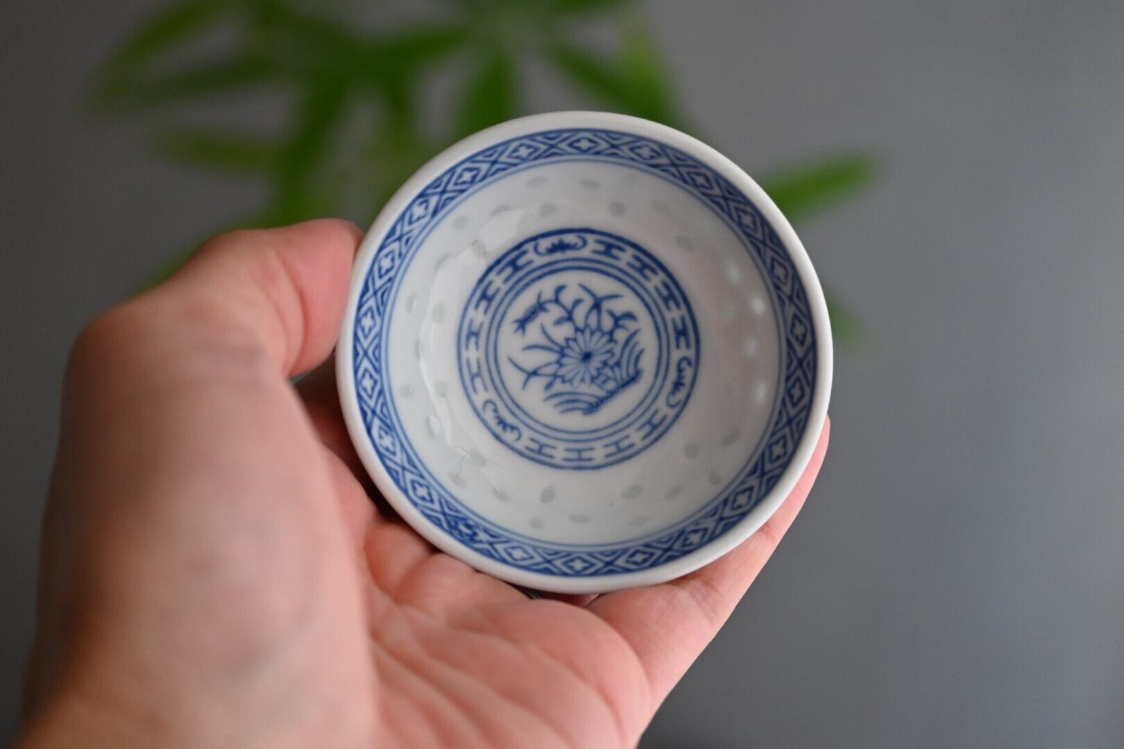 (☆)素地を透かし彫りにし、そのあとに透明の釉薬を充填して焼成する技法を「蛍手」と呼びます。光にかざすと、透かし彫り部分が明るく透き通って見えるのが特徴で、中国では15世紀明代以降に作られるようになったそう。日本では有田焼の磁器によく見られるようです。