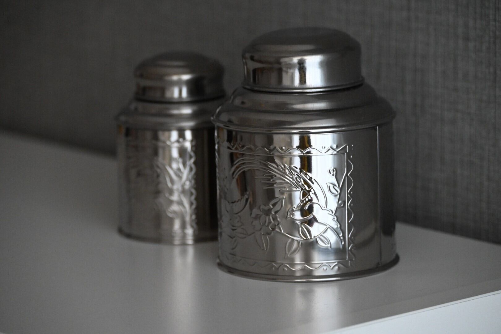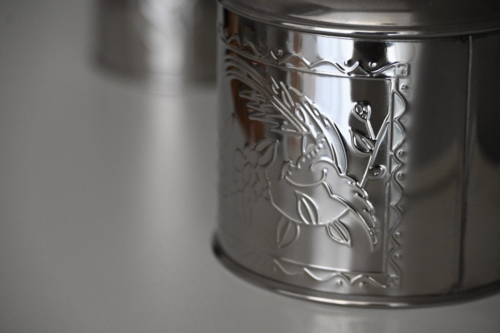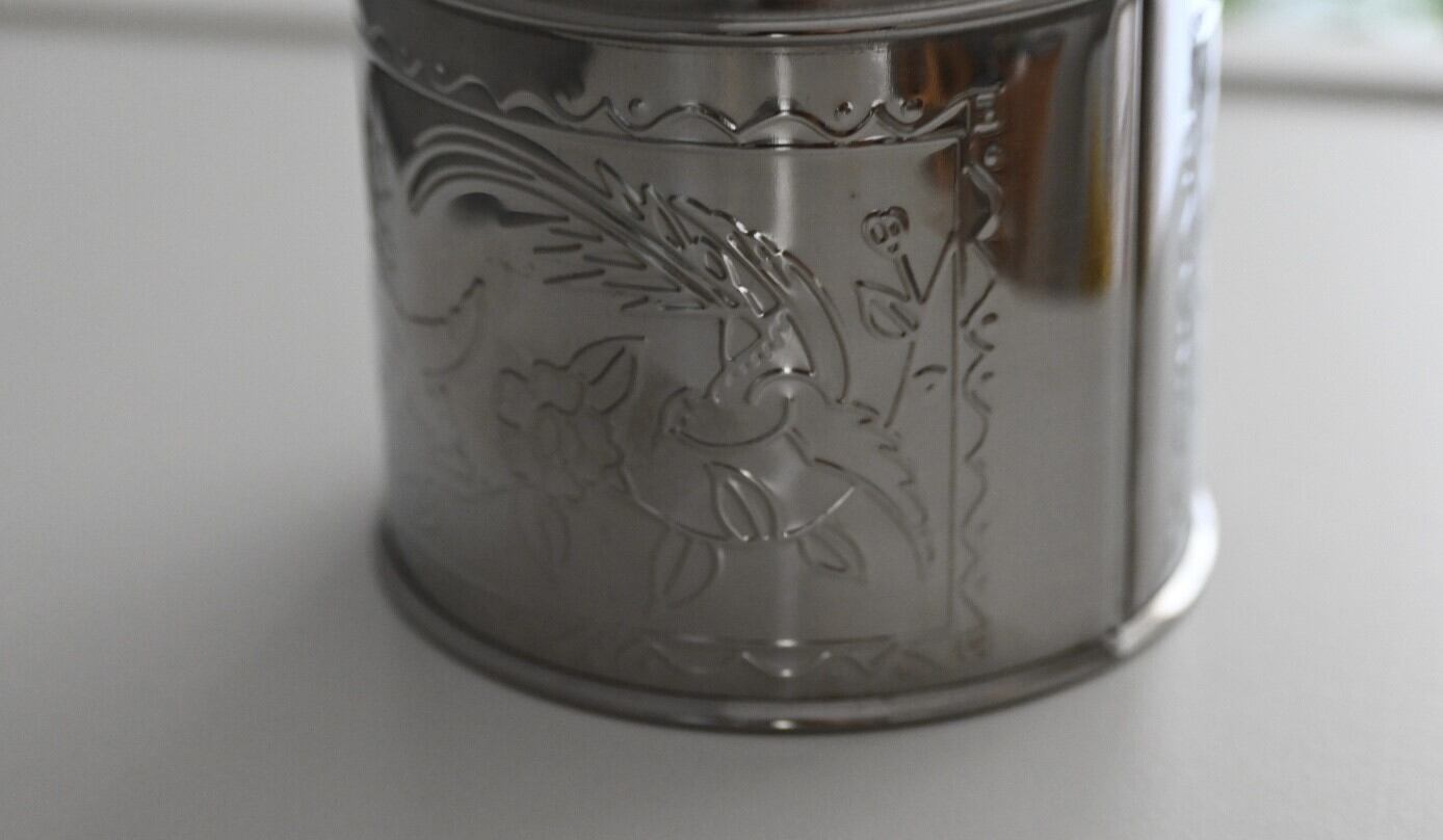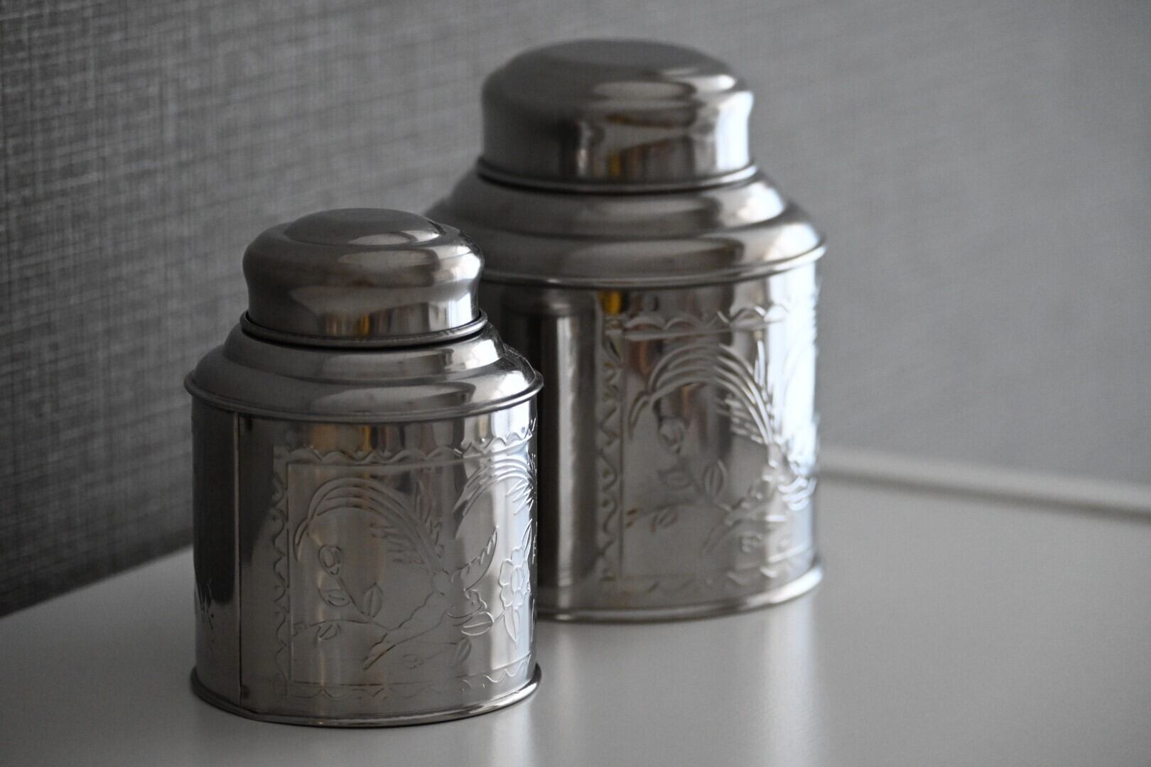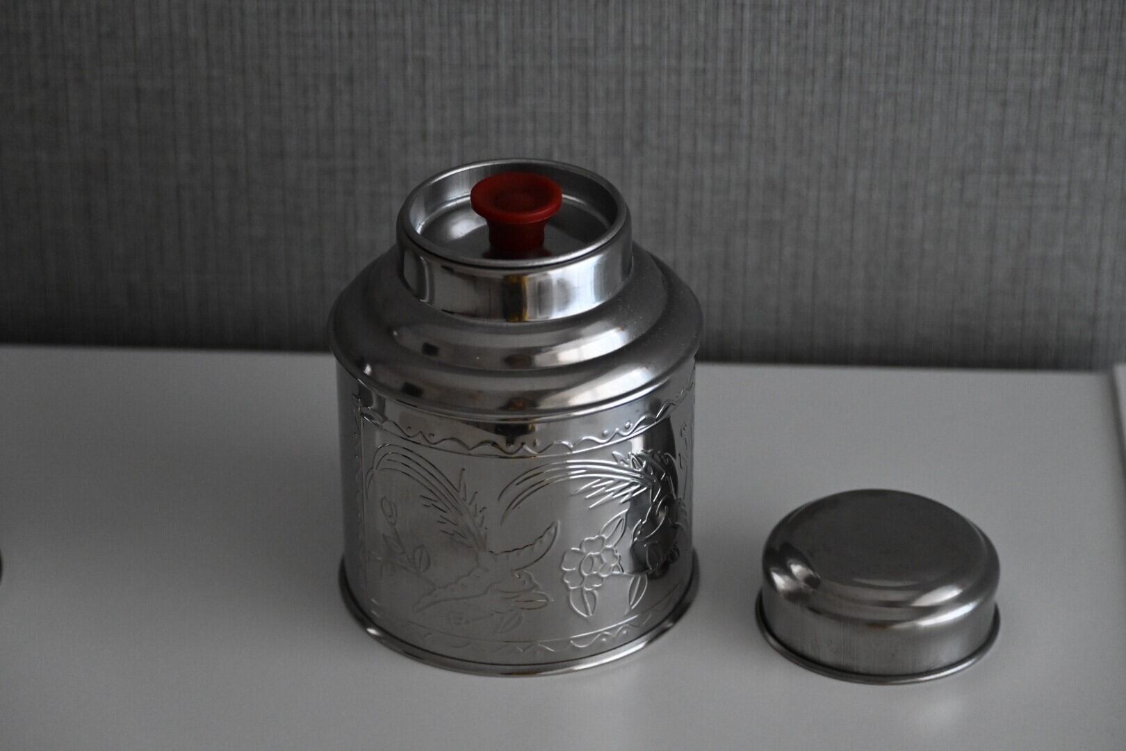 お茶葉を保管するためのステンレスの缶です。
