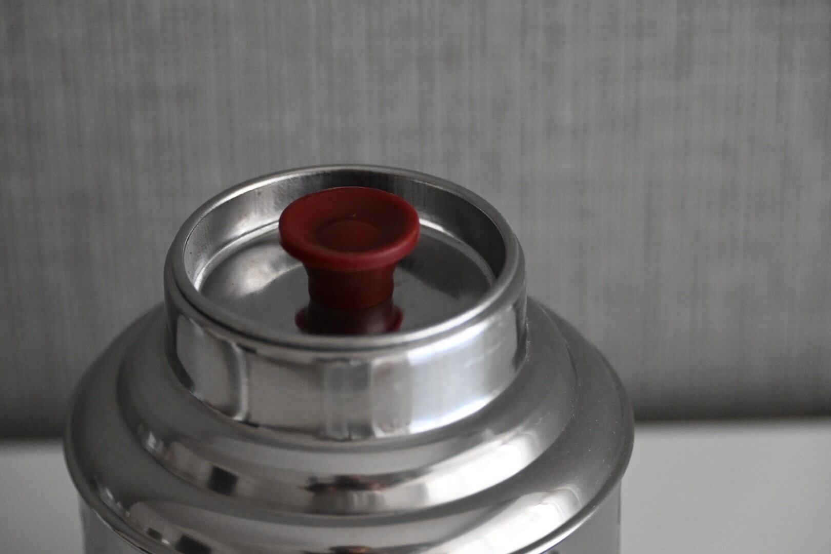 蓋を開けるともうひとつ内蓋があり、エンジ色のつまみがついています。