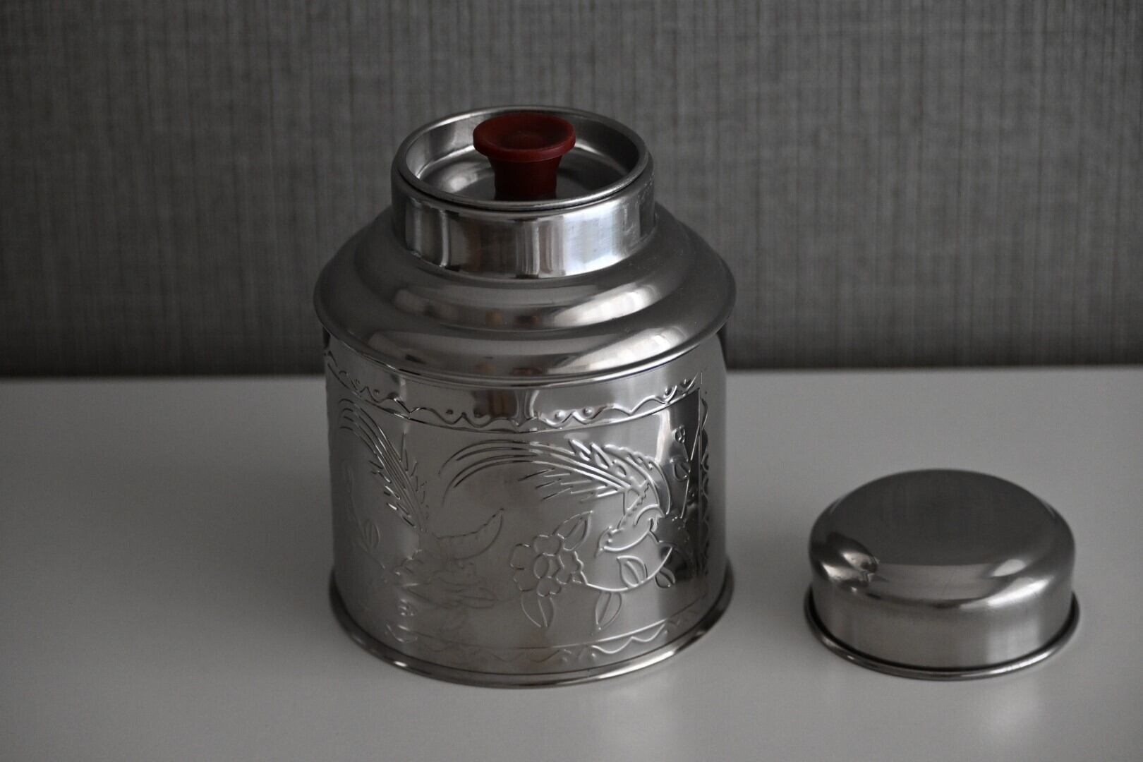 香港ではほかにも、陶器の茶筒も見つけたのですが、やはりこういう用途の道具は軽いことも大事だと思うので、ステンレス製を選びました。
