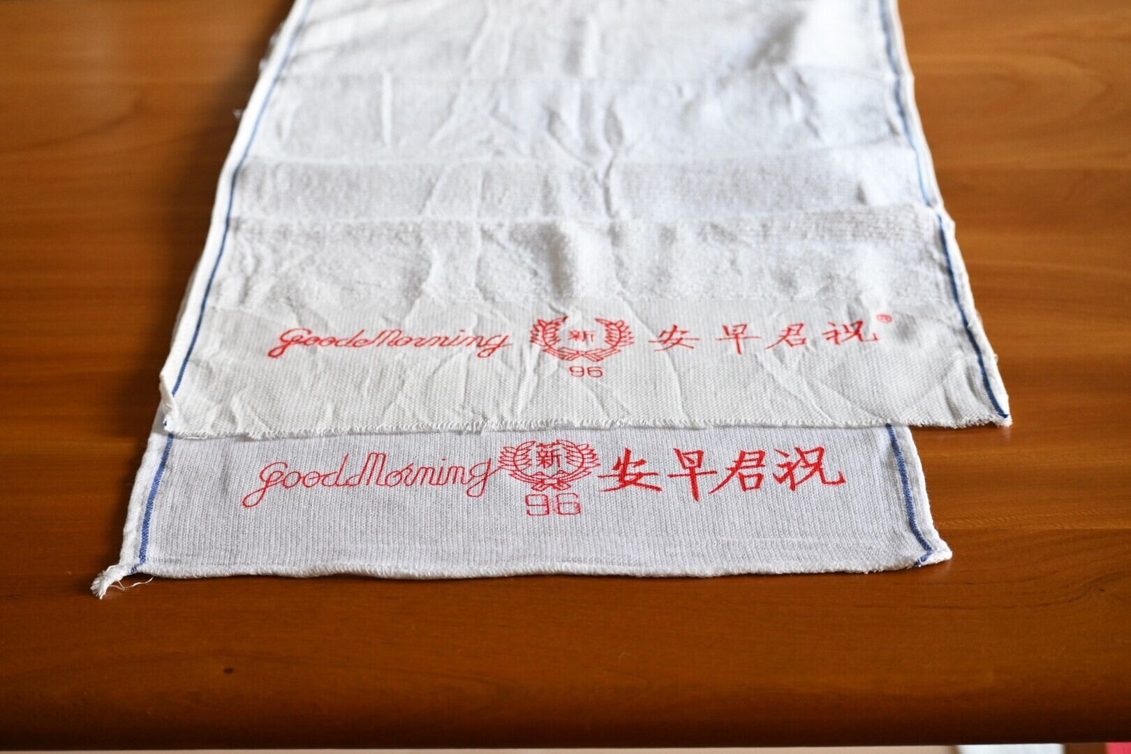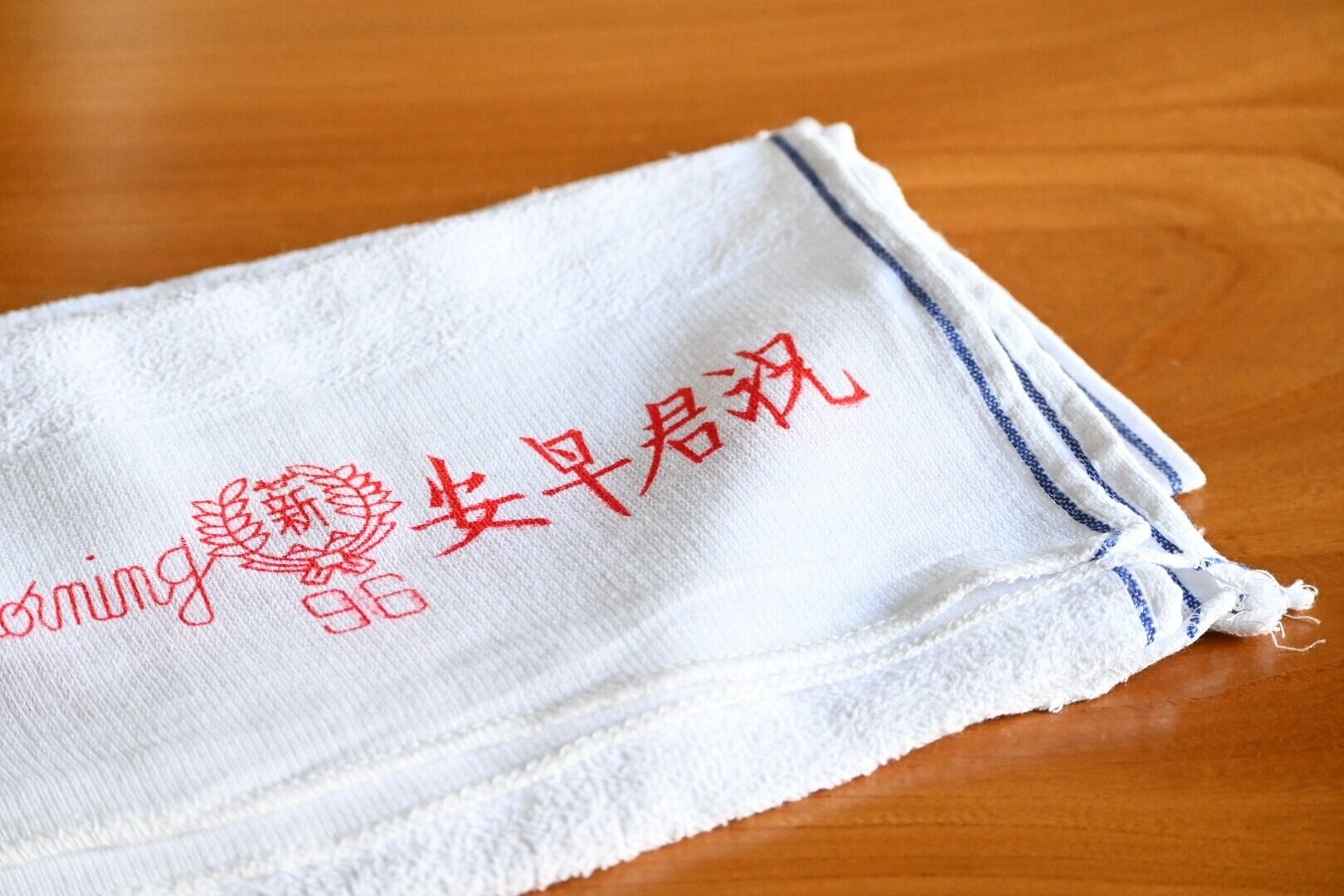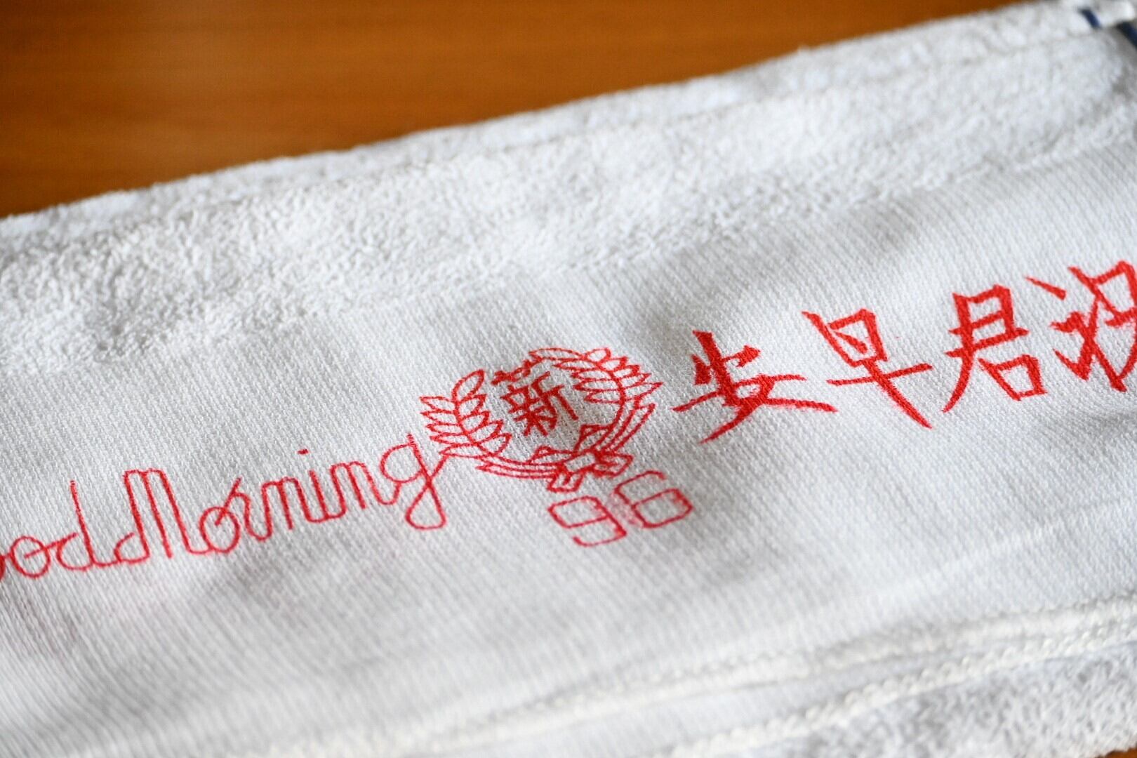 すでに何度かご紹介している別のグッドモーニングタオル(説明文をわかりやすくするため以後Aと呼びます)と、書かれているメッセージは同じこちらのタオル。