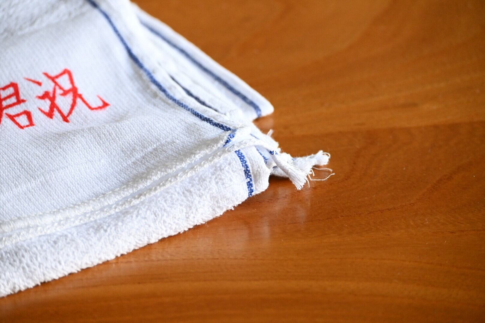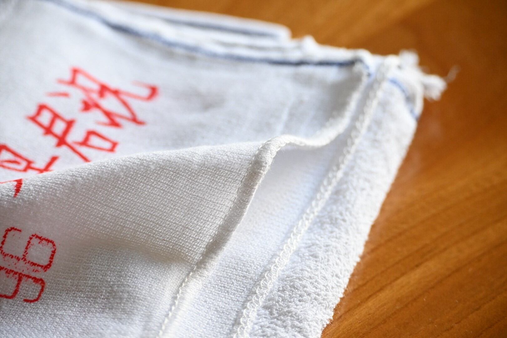 日本の晒や手ぬぐいに近い生地感だったAに比べ、こちらは端の処理の部分に特にタオル感が漂います。タオルとしては薄手で、金さんタオルに似ているなというのが使ってみた感想です。