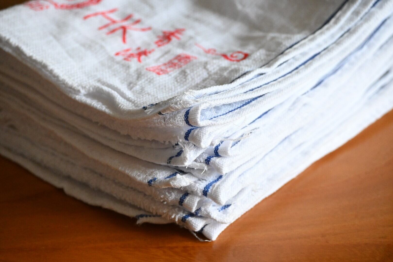 赤字と青色の縁はすべてのタオルに共通していますが、印刷される文字やその雰囲気でこんなにも感じが変わってくるのだな…奥深い…ともはや感心しました。