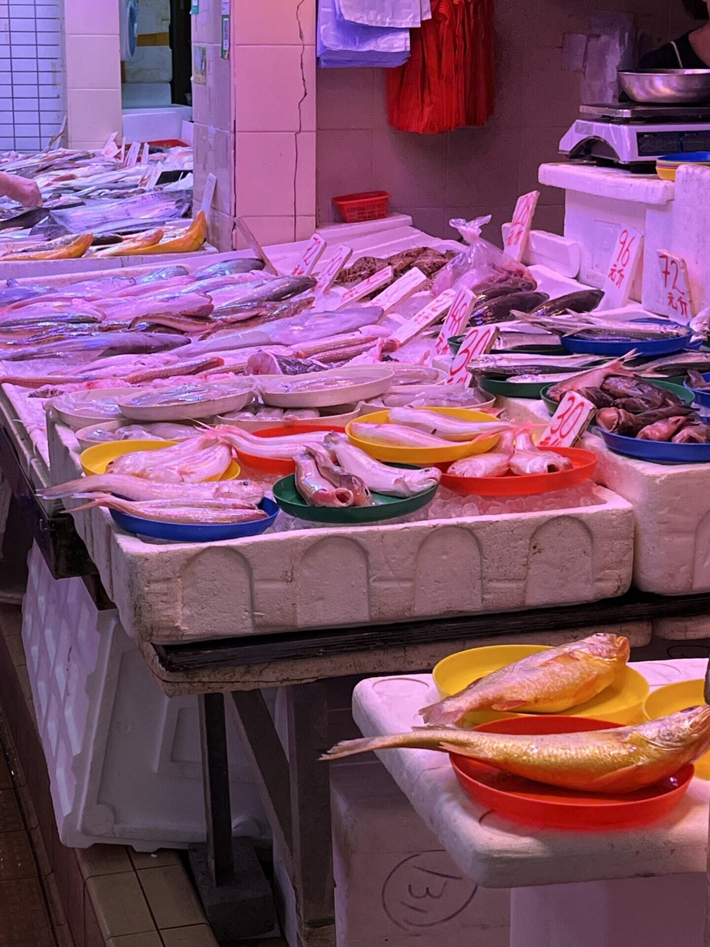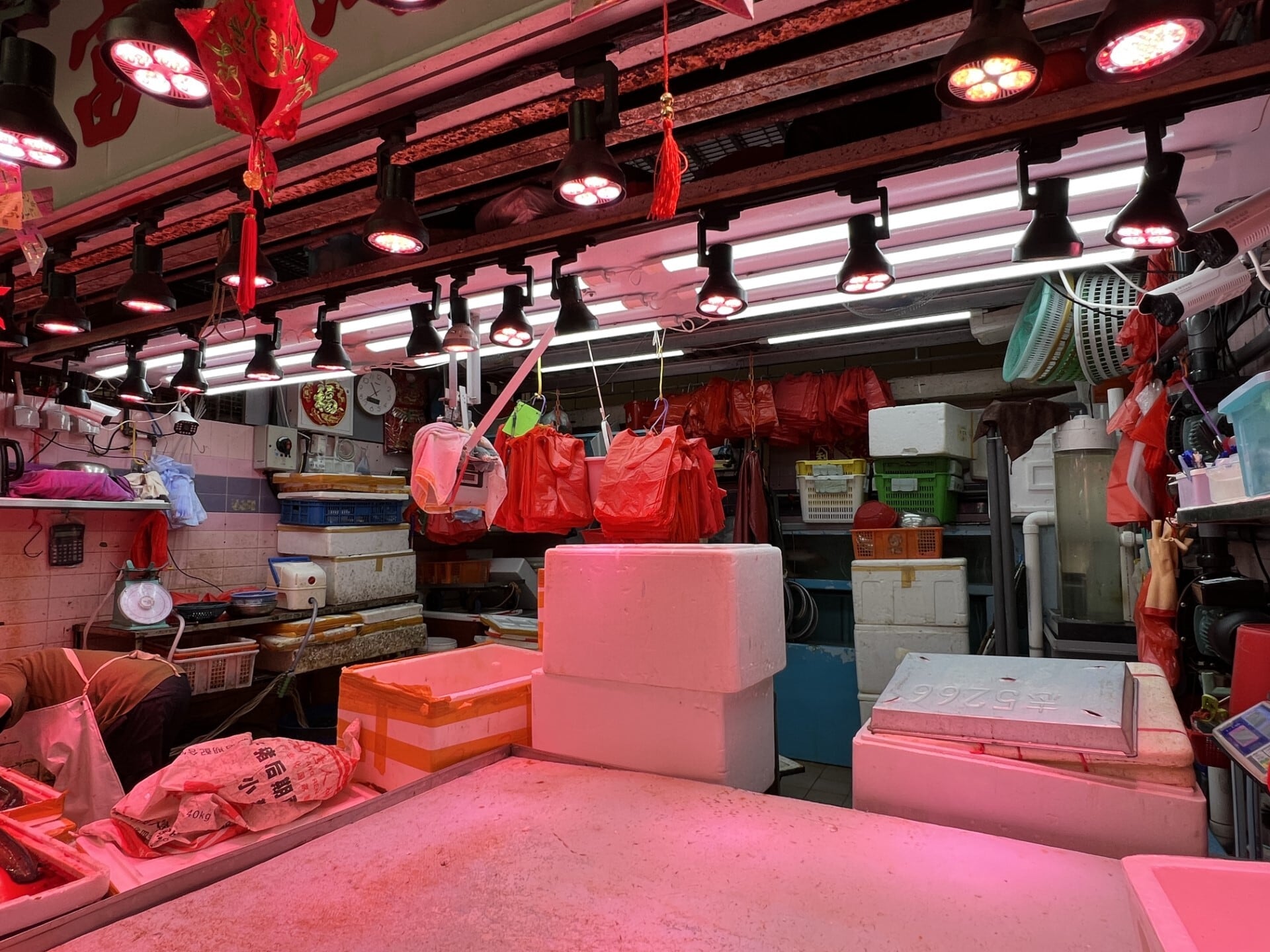 香港の商店のランプ、市場のプラスチックかご、そしてどんなお店でもかなりの確率で遭遇する赤いビニール袋。特に市場はこの袋なしでは語れません。ビニール袋を撮ろうとして撮ったわけではないのに、香港で撮った写真にはたくさん映り込んでいました。