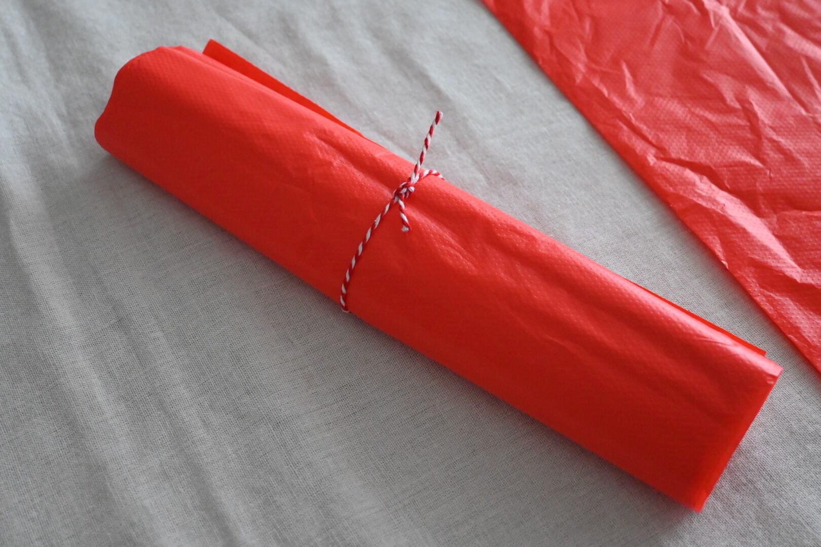 友人になにかをおすそわけする時などにこの赤いビニール袋をよく使っています。