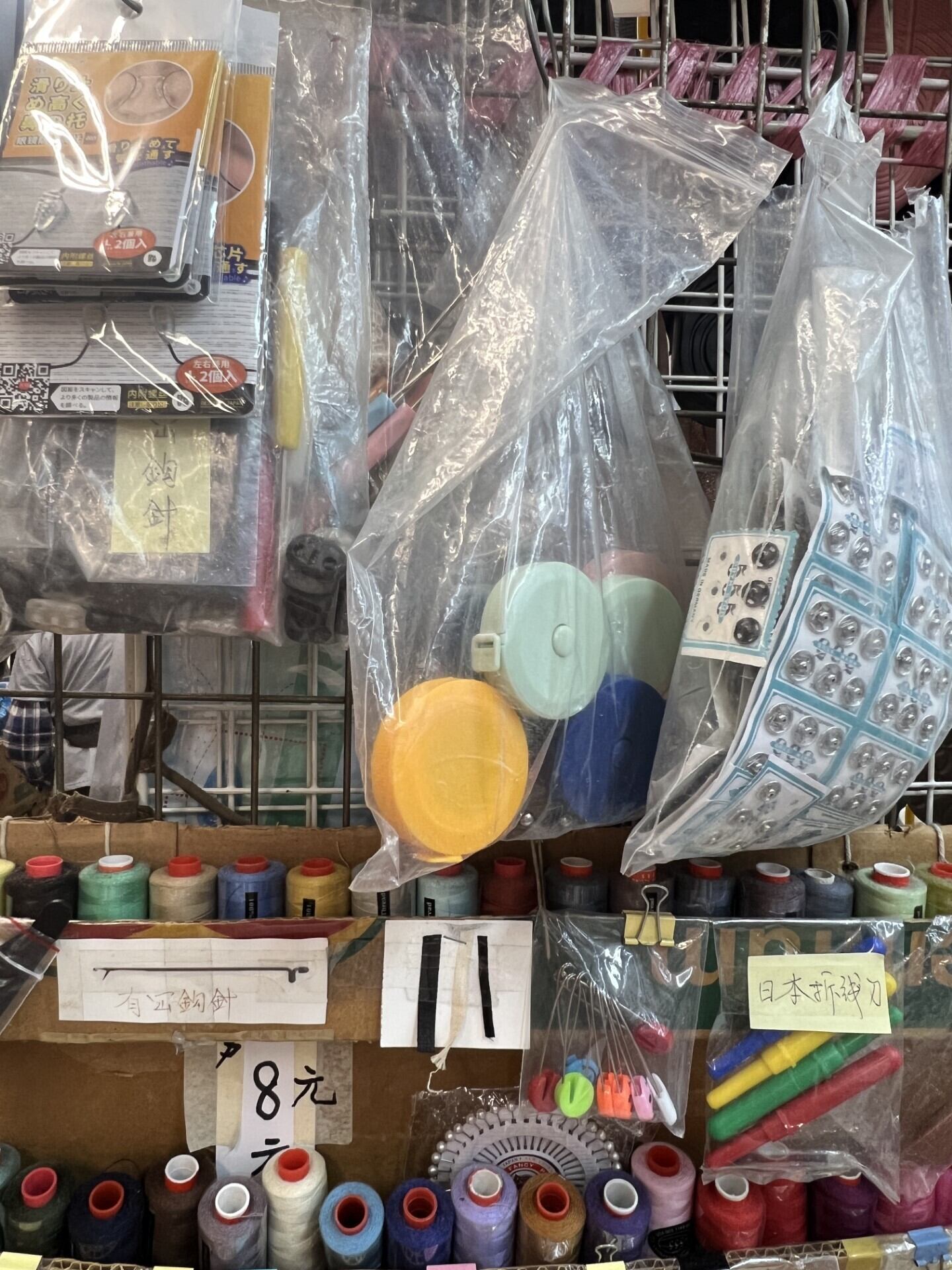 そして面白いのが、その衣類などをちょっと直したりするためでしょうか、小さなミシン工房みたいなお店もひっそりとあることが多いのです。