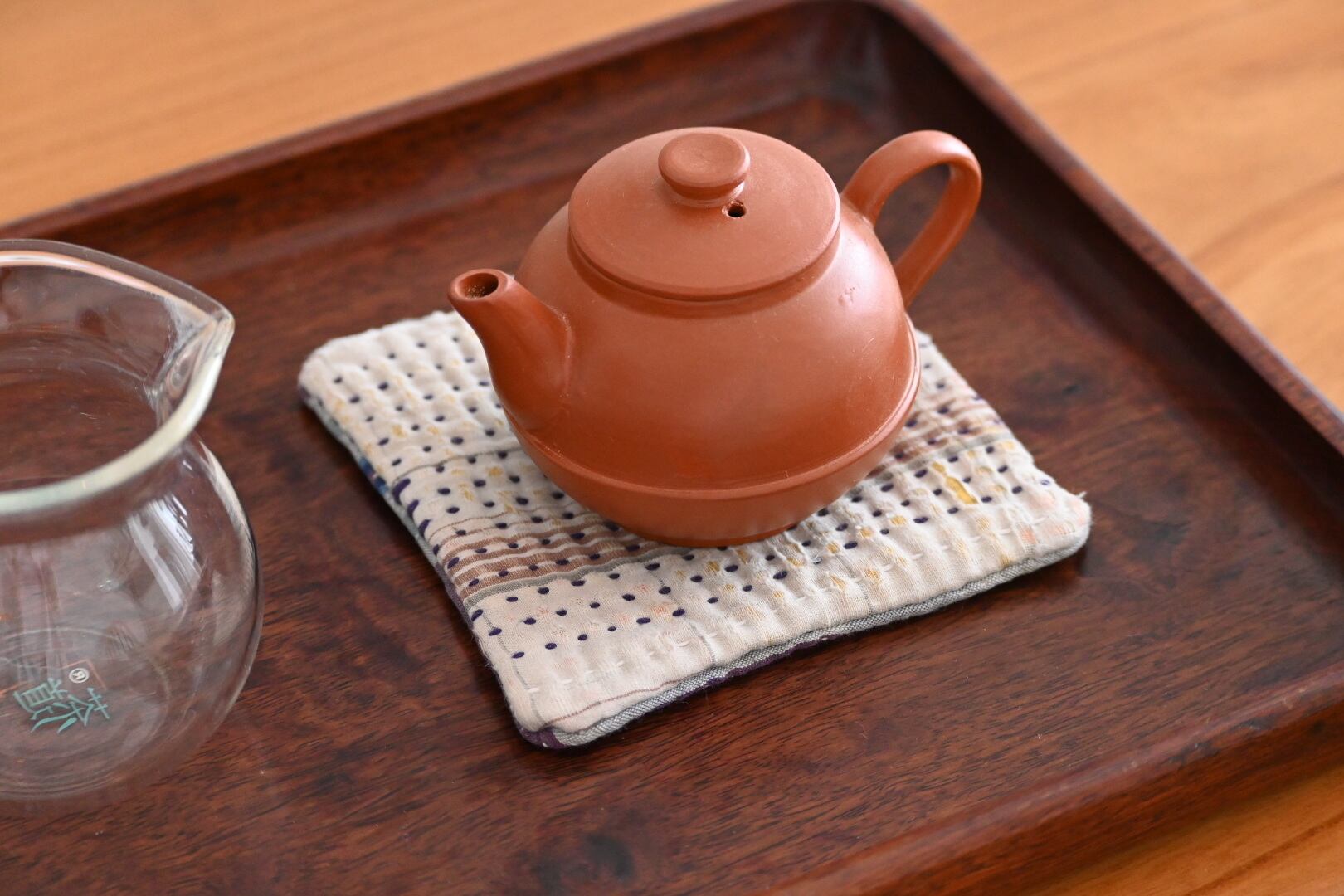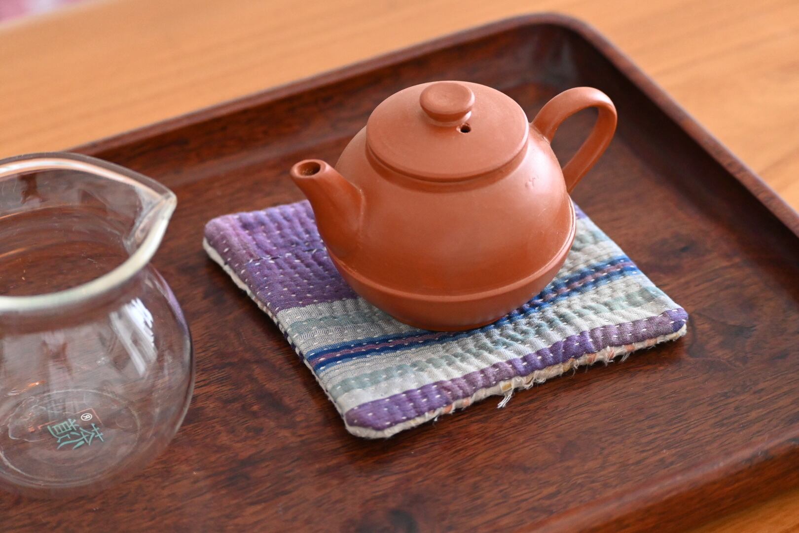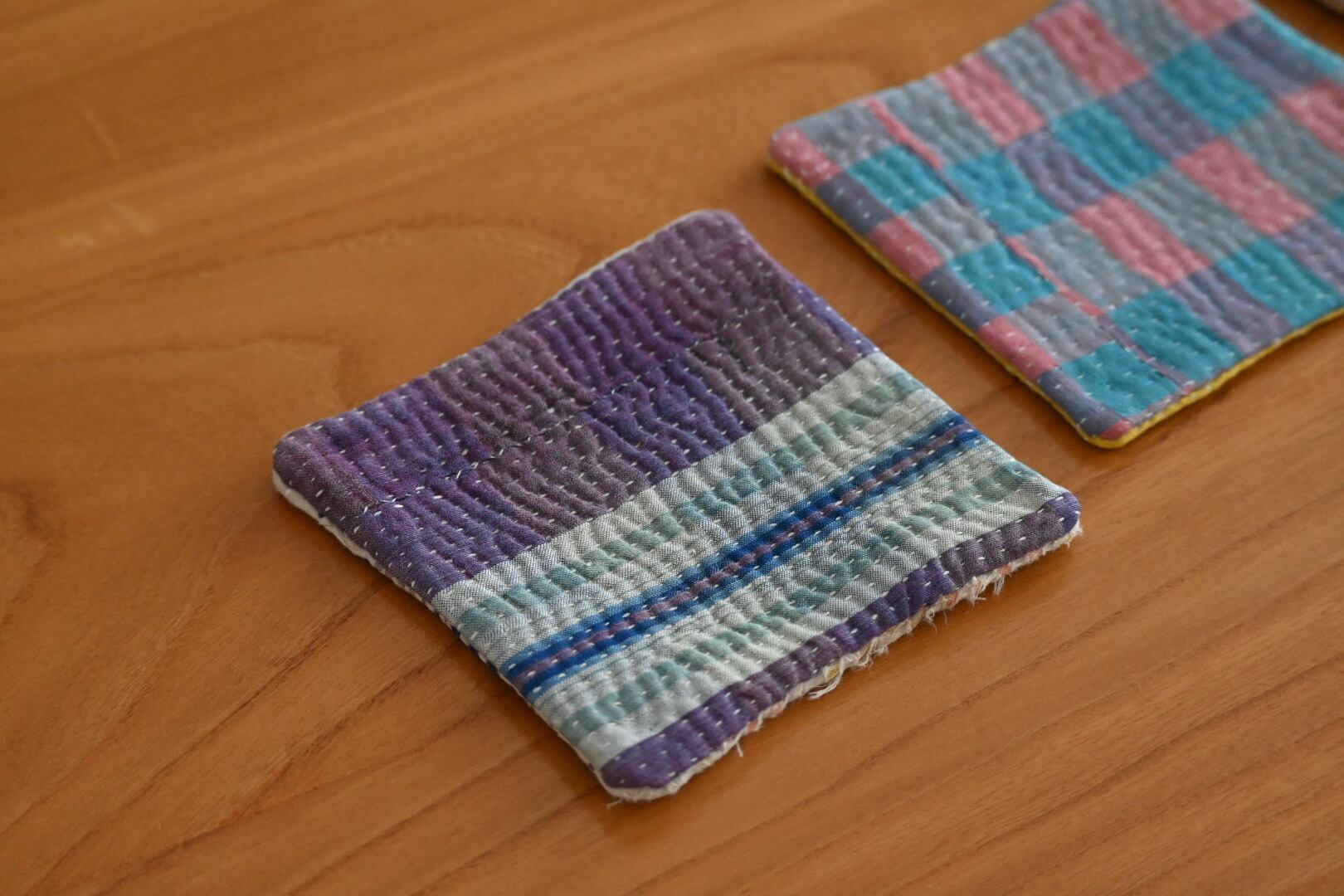 ヴィンテージのカンタキルトの端切れを縫い合わせて作ったコースターです。