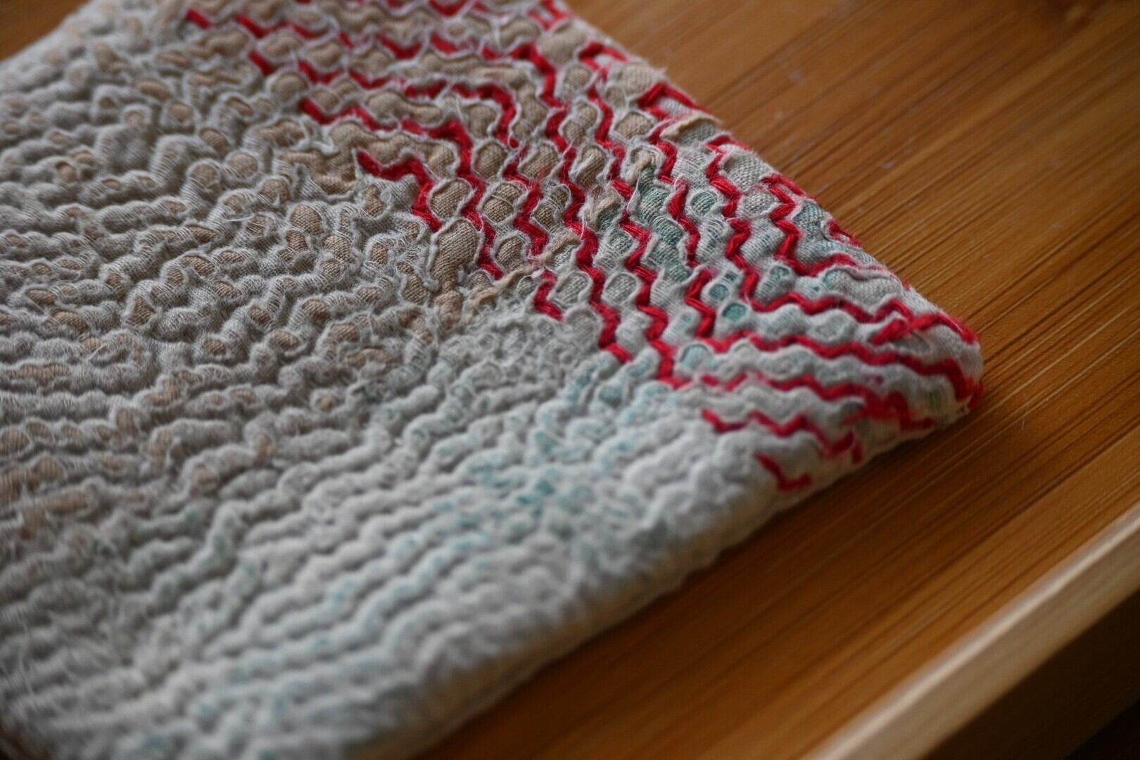 元々の端切れに少しの擦り切れや、糸のはみ出しなどがあり、新しい布のもつ雰囲気とは異なりますので、それも味わいと思ってくださる方に。