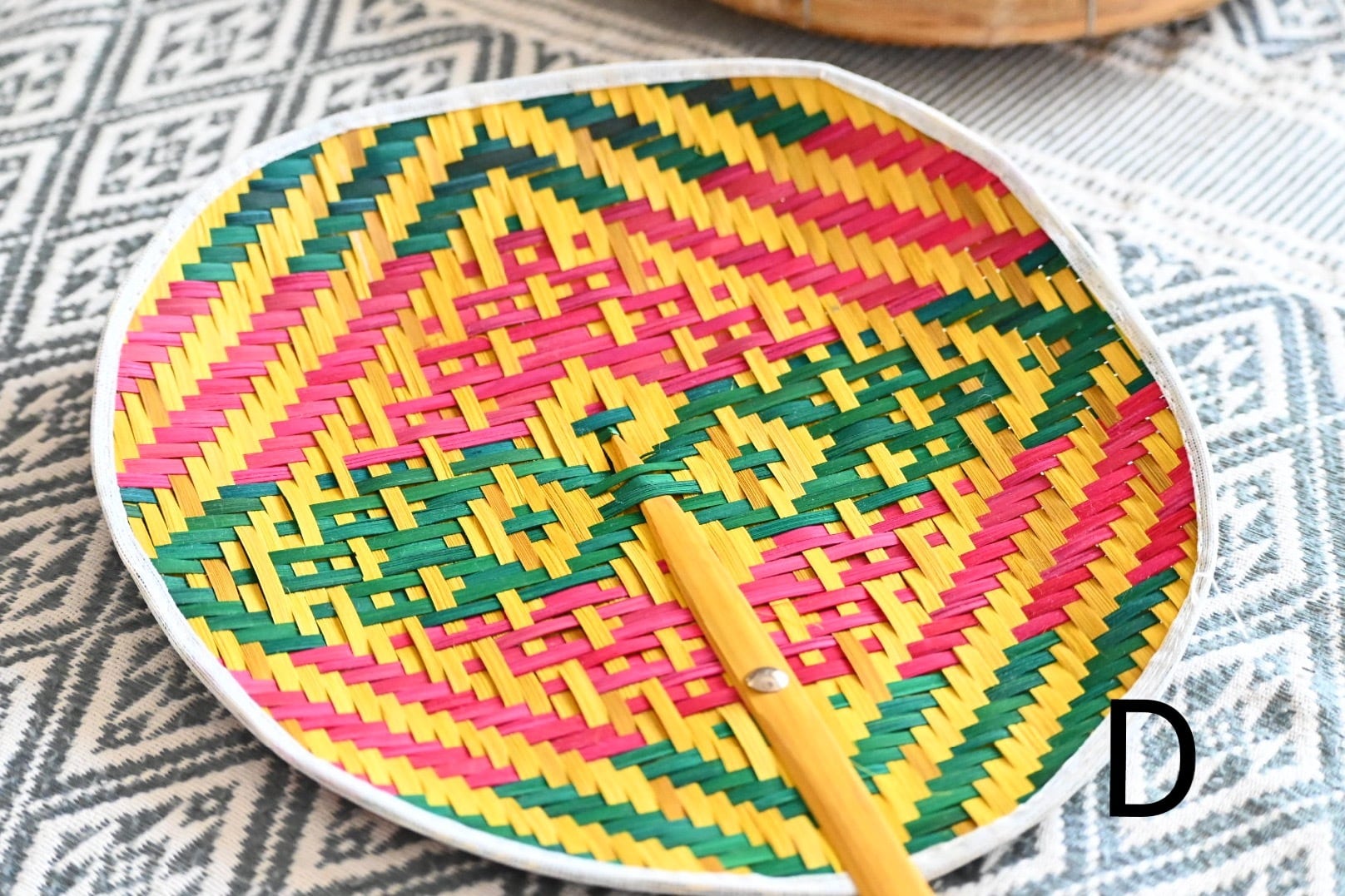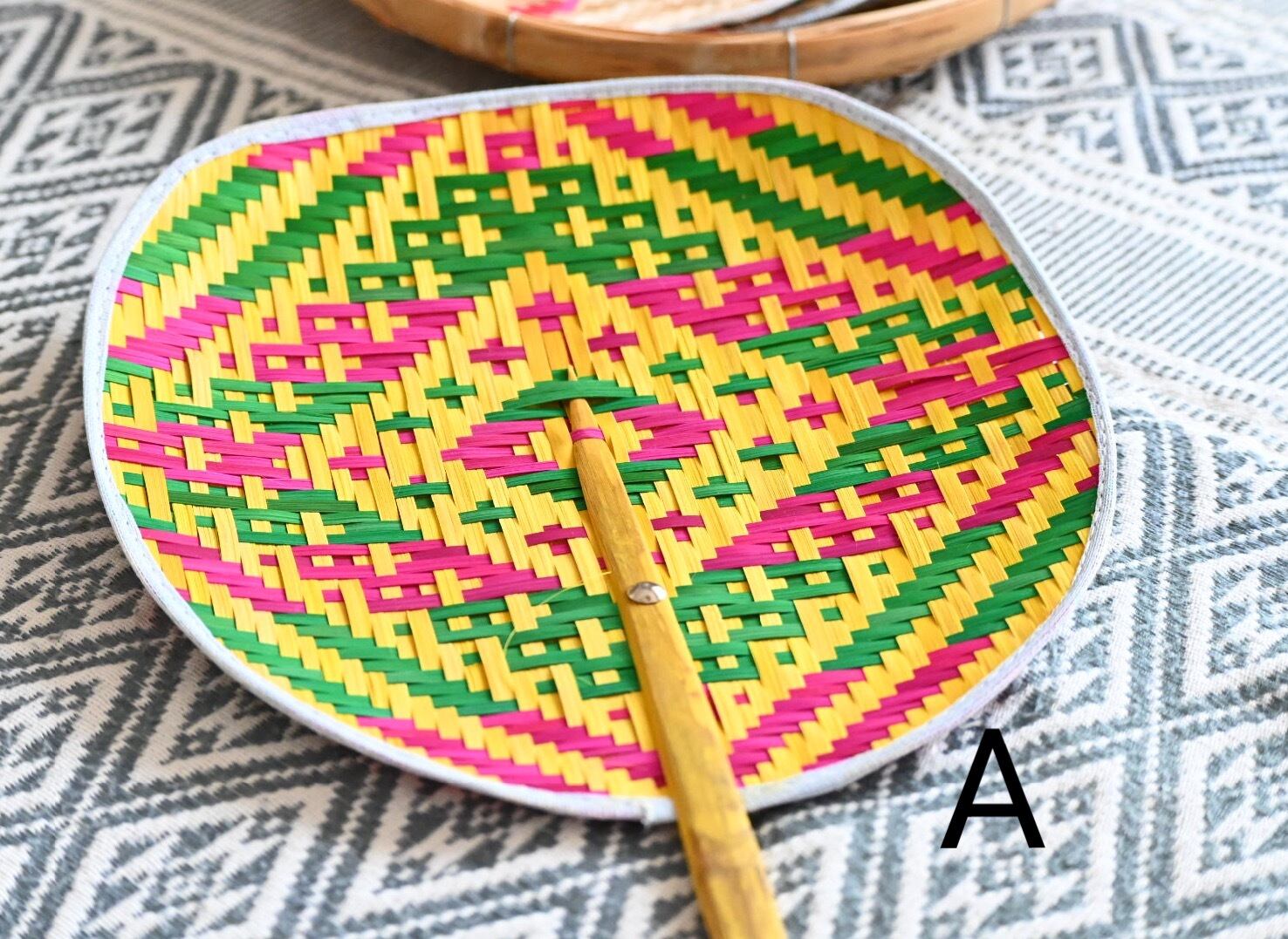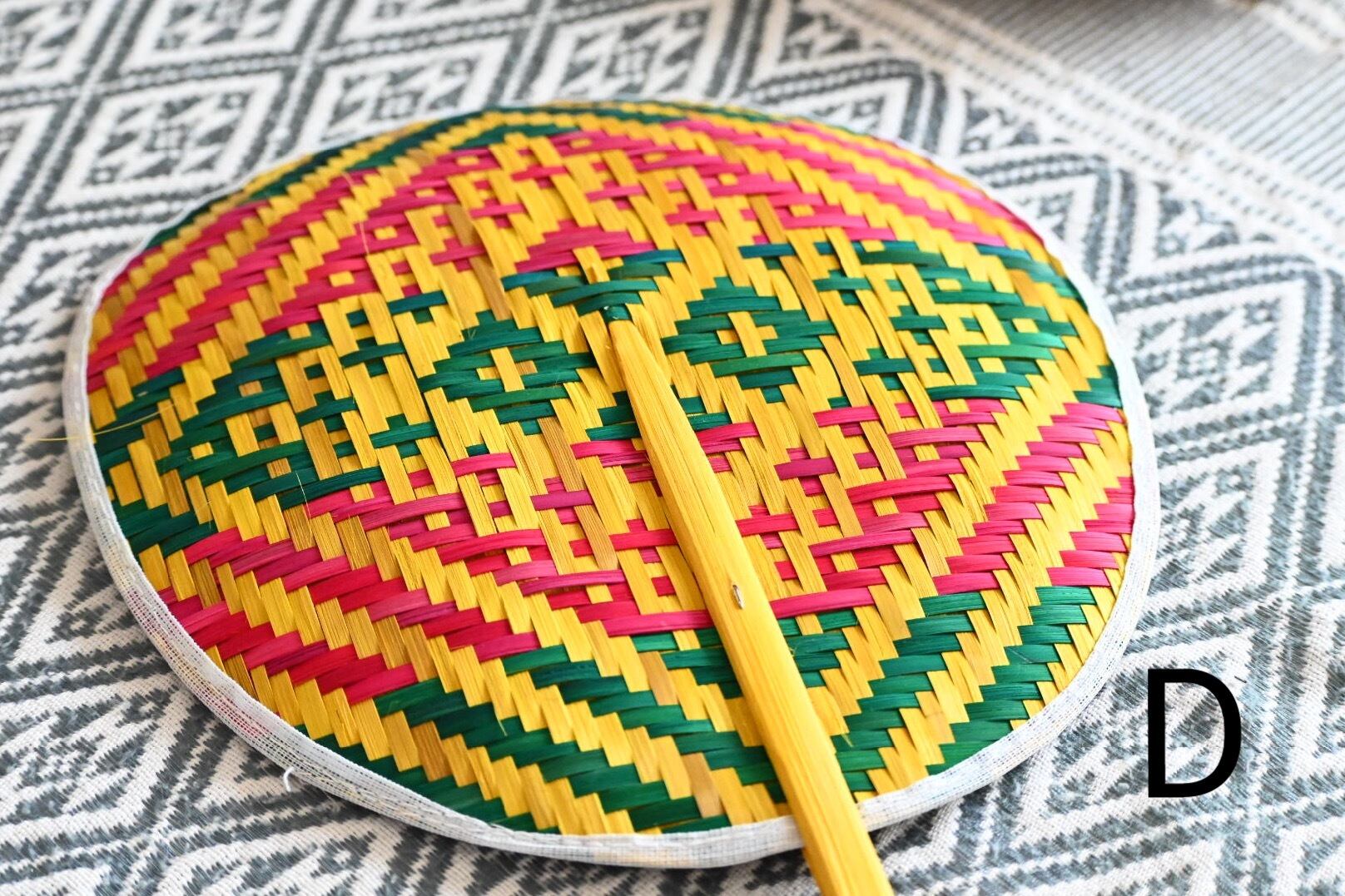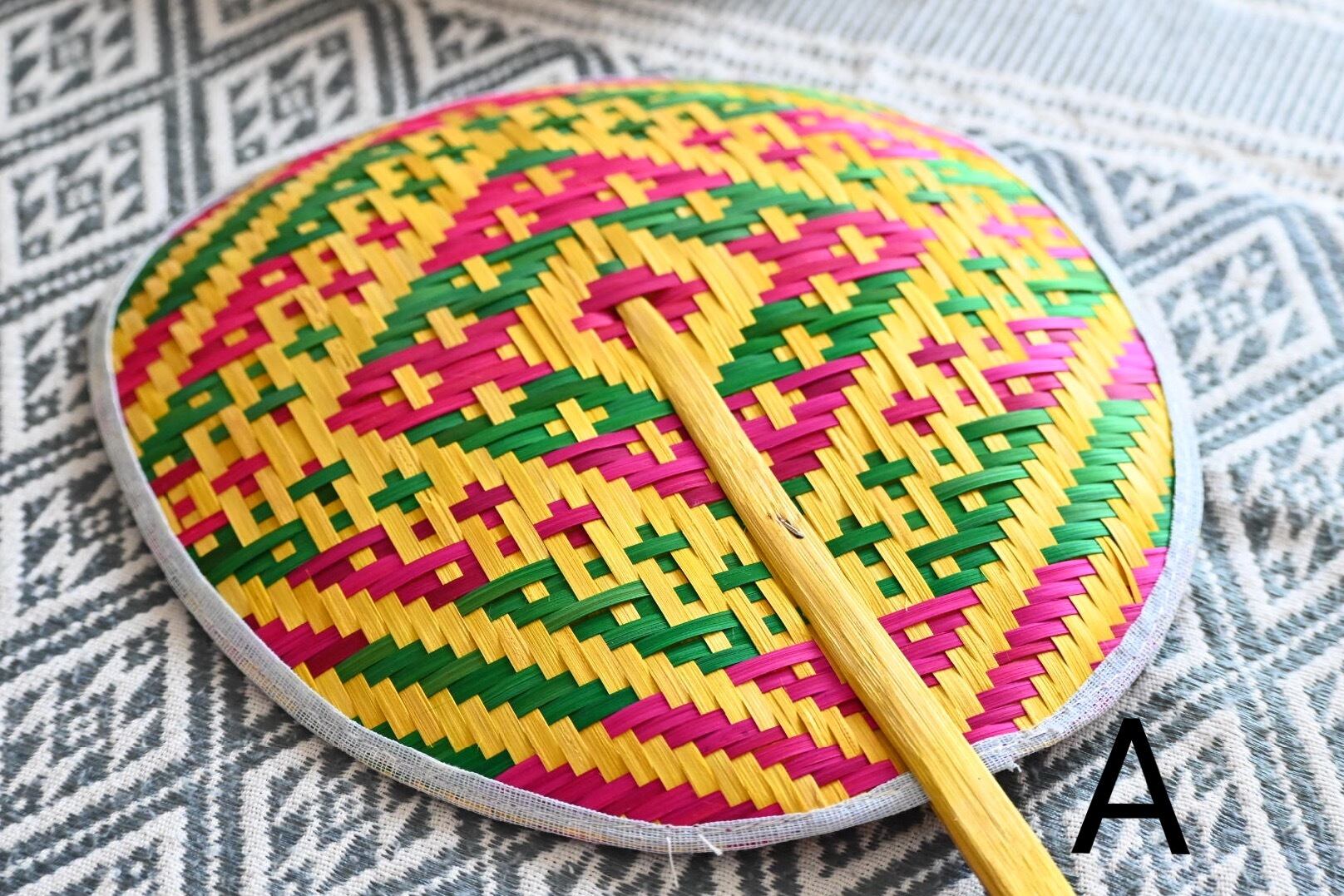 それからこのうちわに限りませんが、タイの自然素材の製品は防虫のため燻して仕上げています。そのため燻した香りが少しまだ残っている場合があります。ご了承ください。