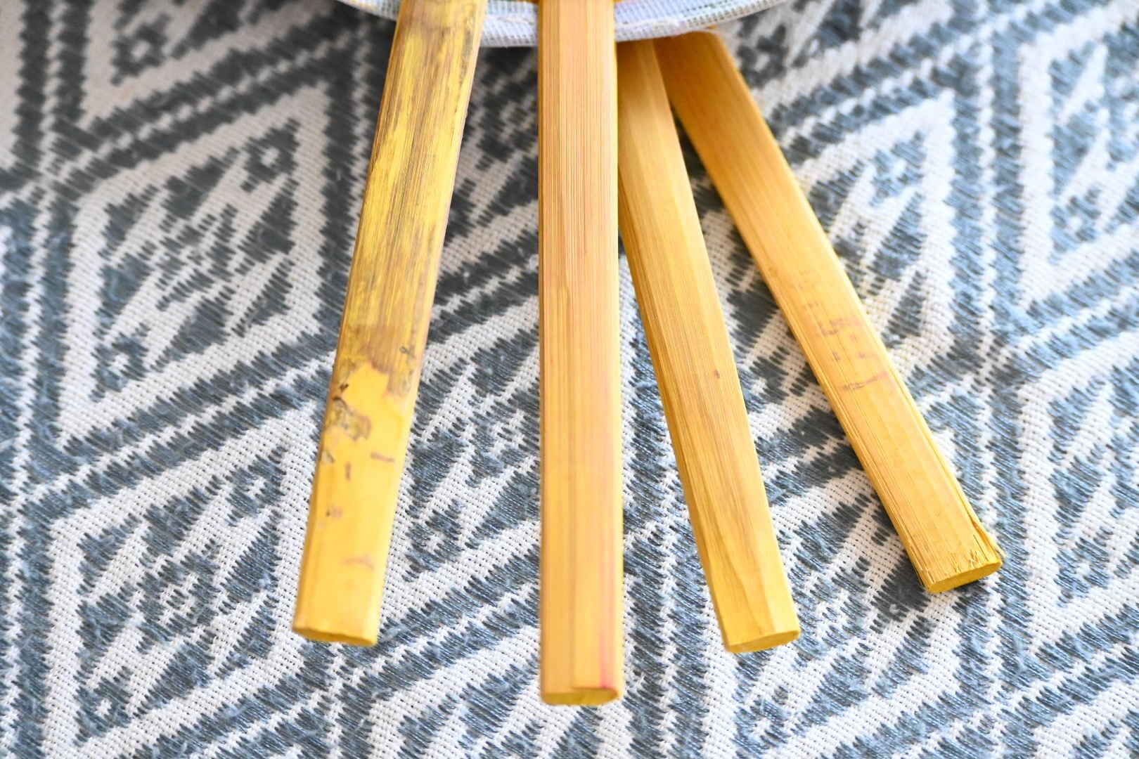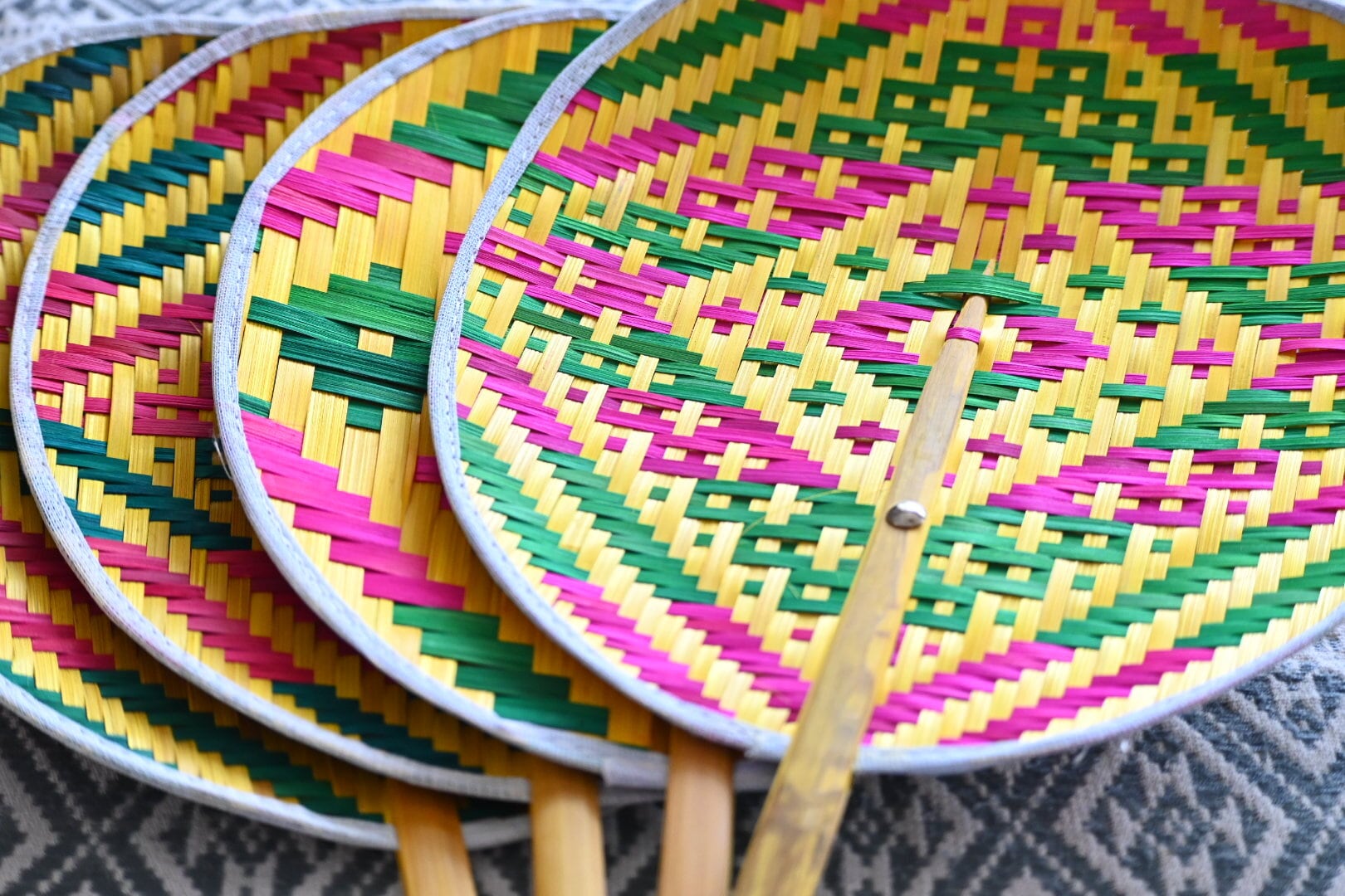 カラフルなものには普段あまり食指が動かない私ですが、この竹でできたうちわは一目見た瞬間気に入ってしまいました。