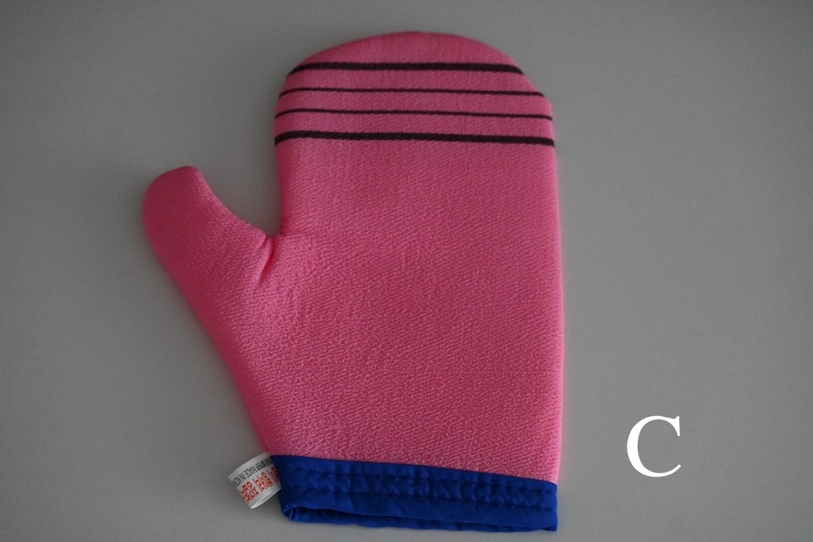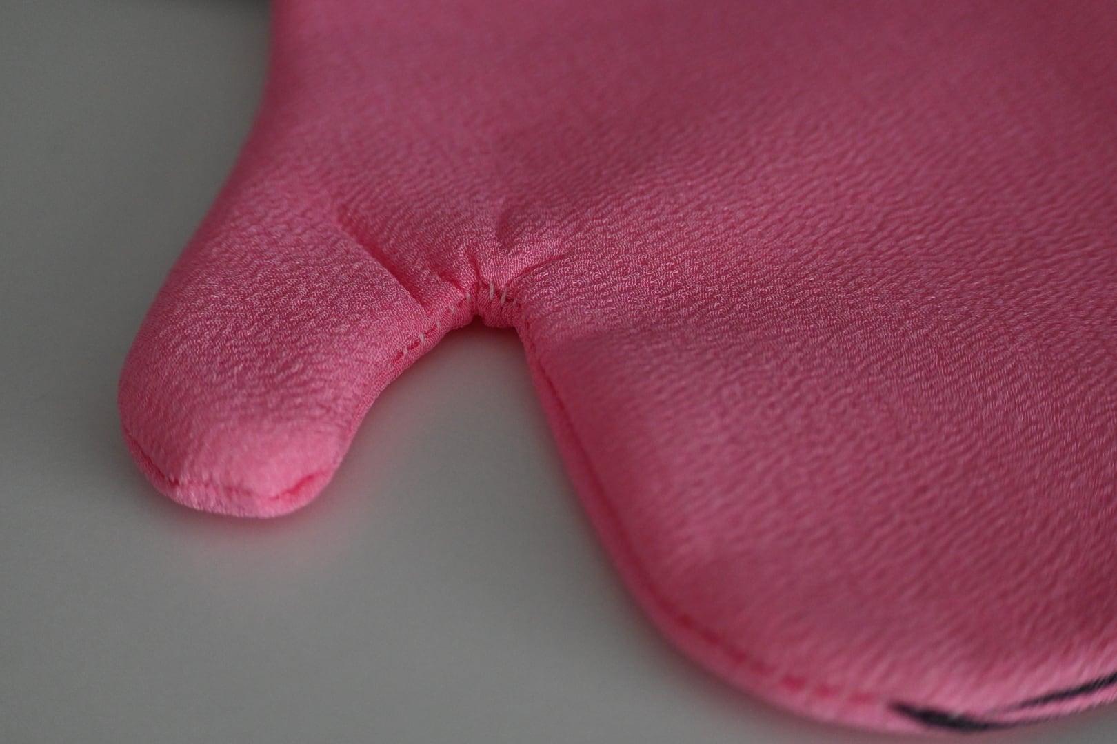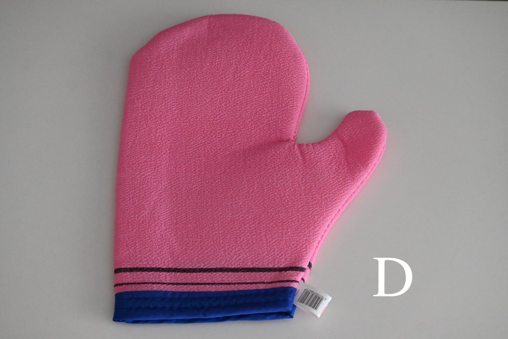 温泉タオルのサイズの長方形の垢すりタオルもありましたが、私はこの特定のピンクの手袋型の垢すりに無性に惹かれてしまい、これを見つけた小さな商店さんのスタッフさんがしばらく倉庫の奥を探してくれて、あったよあったよーといくつか持ってきてくれました。