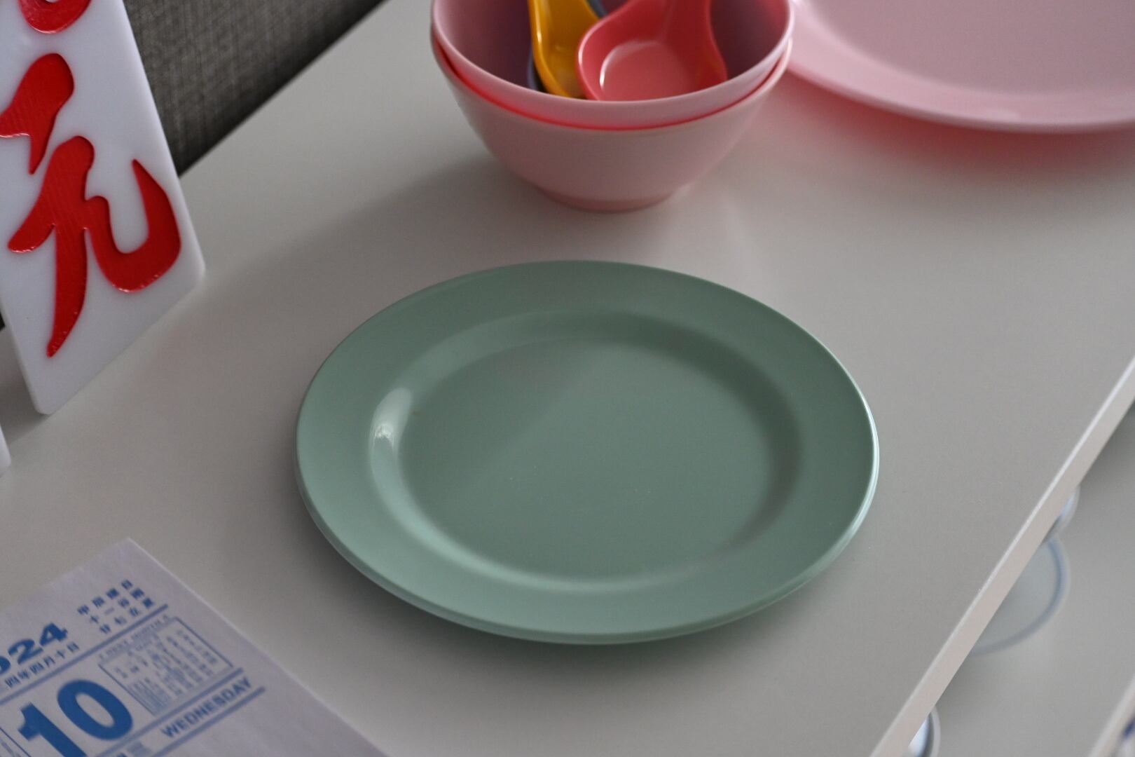 ・(香港)メラミンのミントグリーンのお皿(約15㎝径)