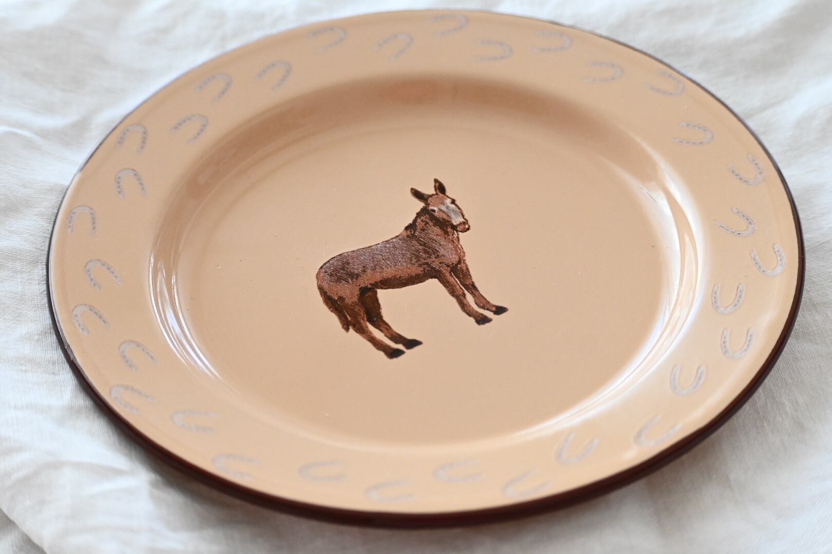 ・(タイ)ホーローのお皿馬柄 リムもベージュ×2点